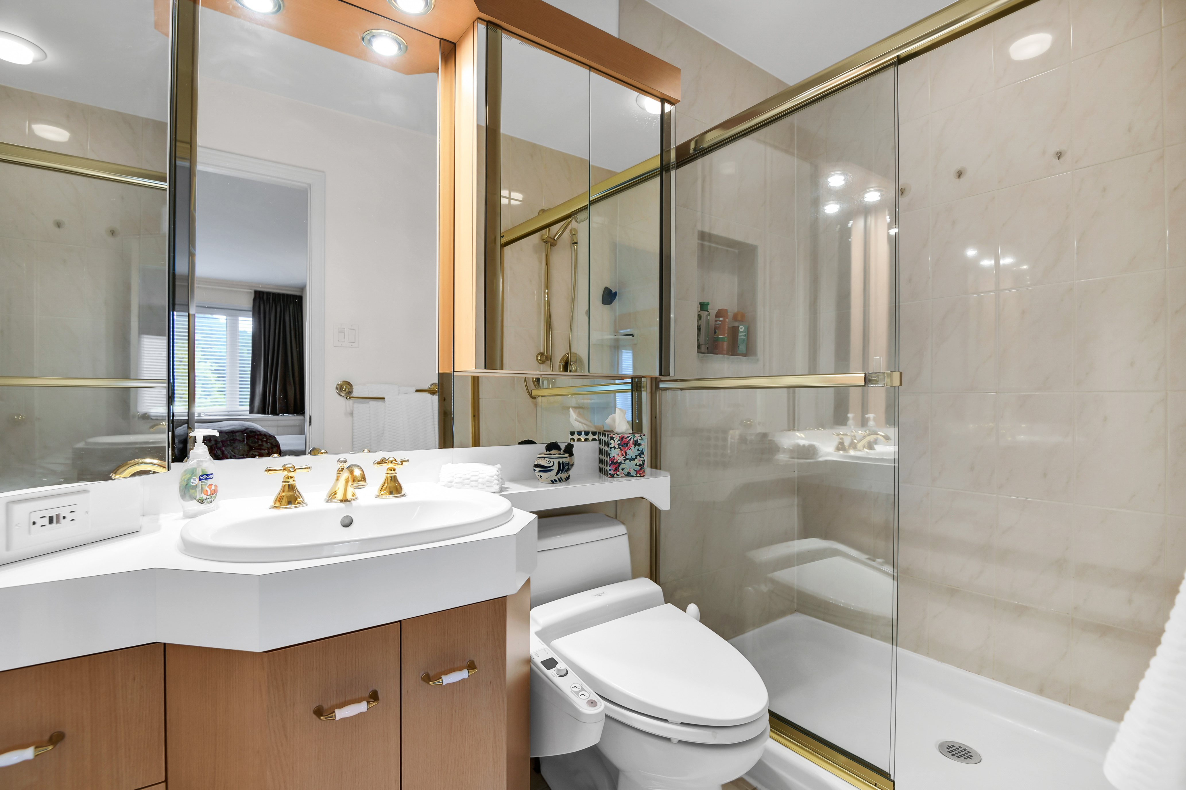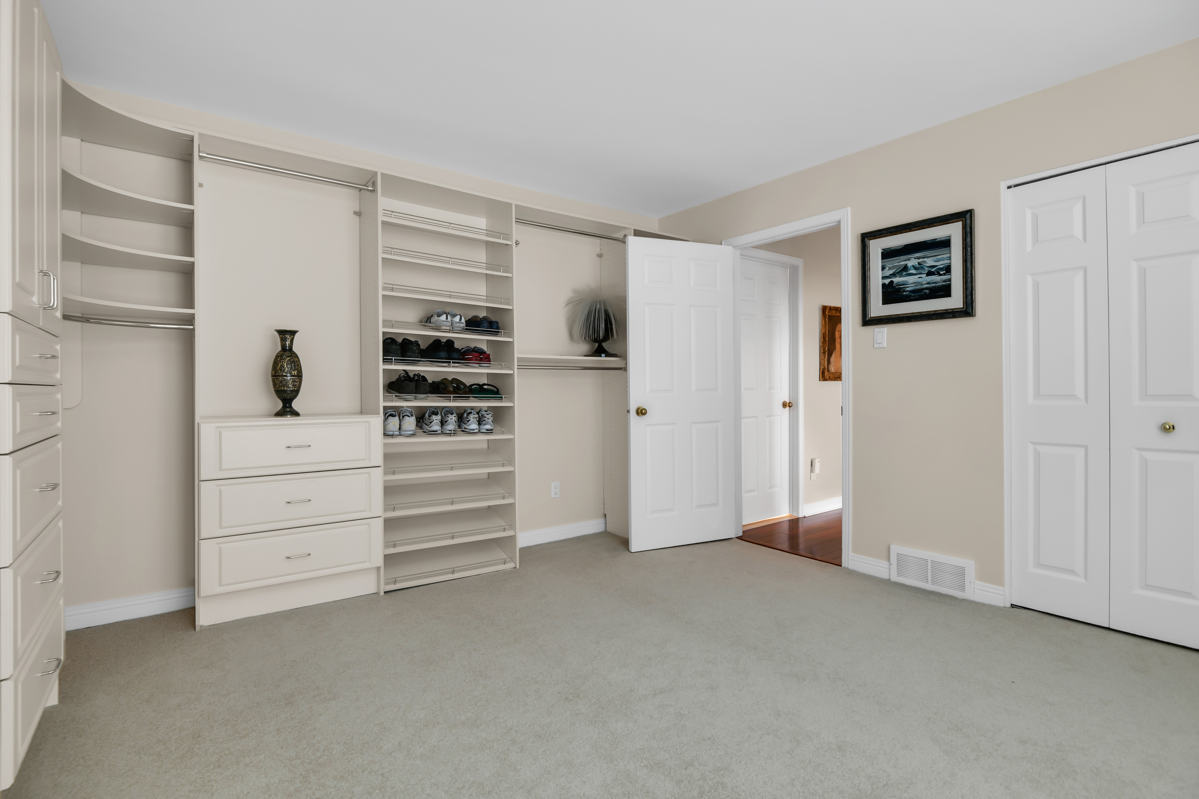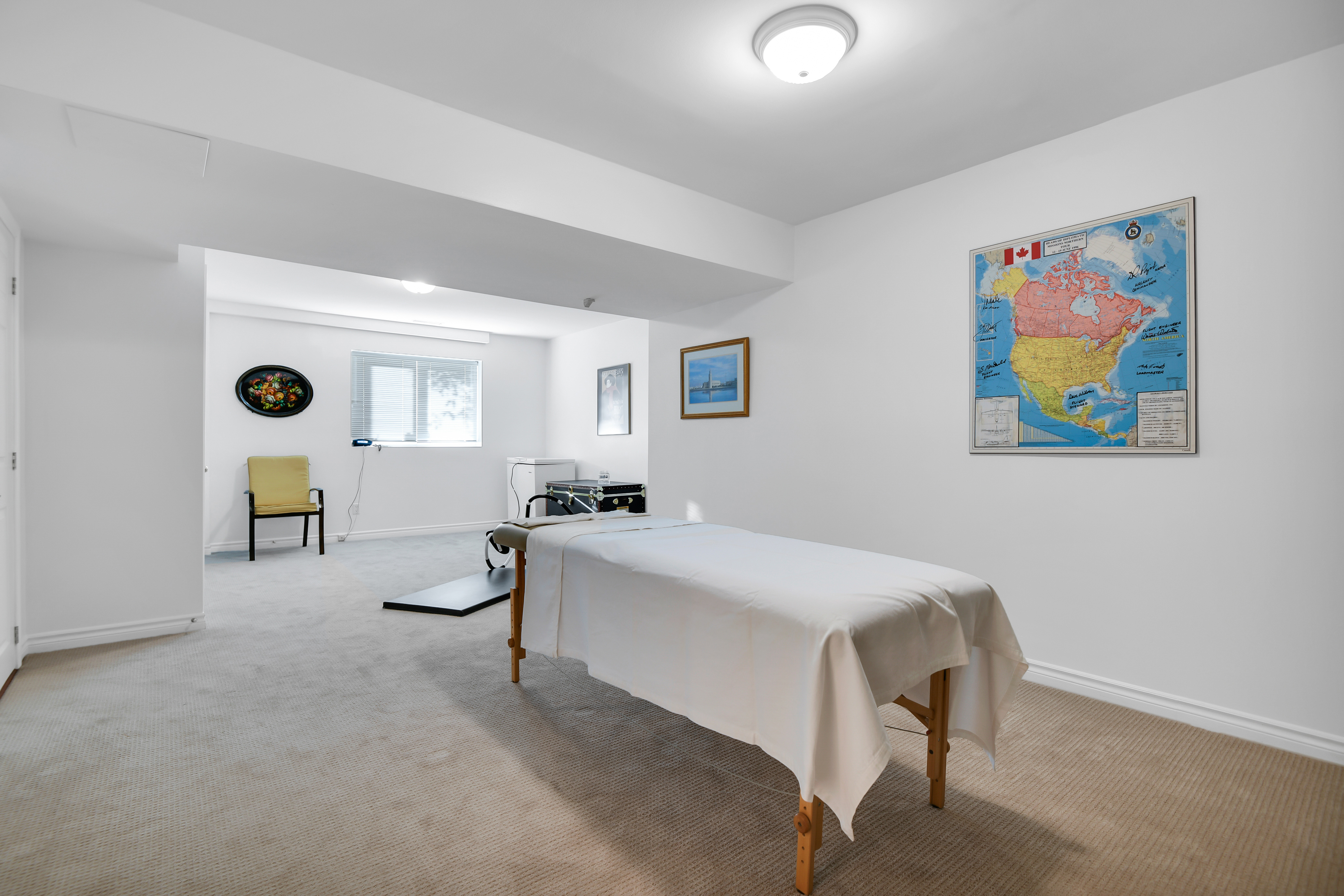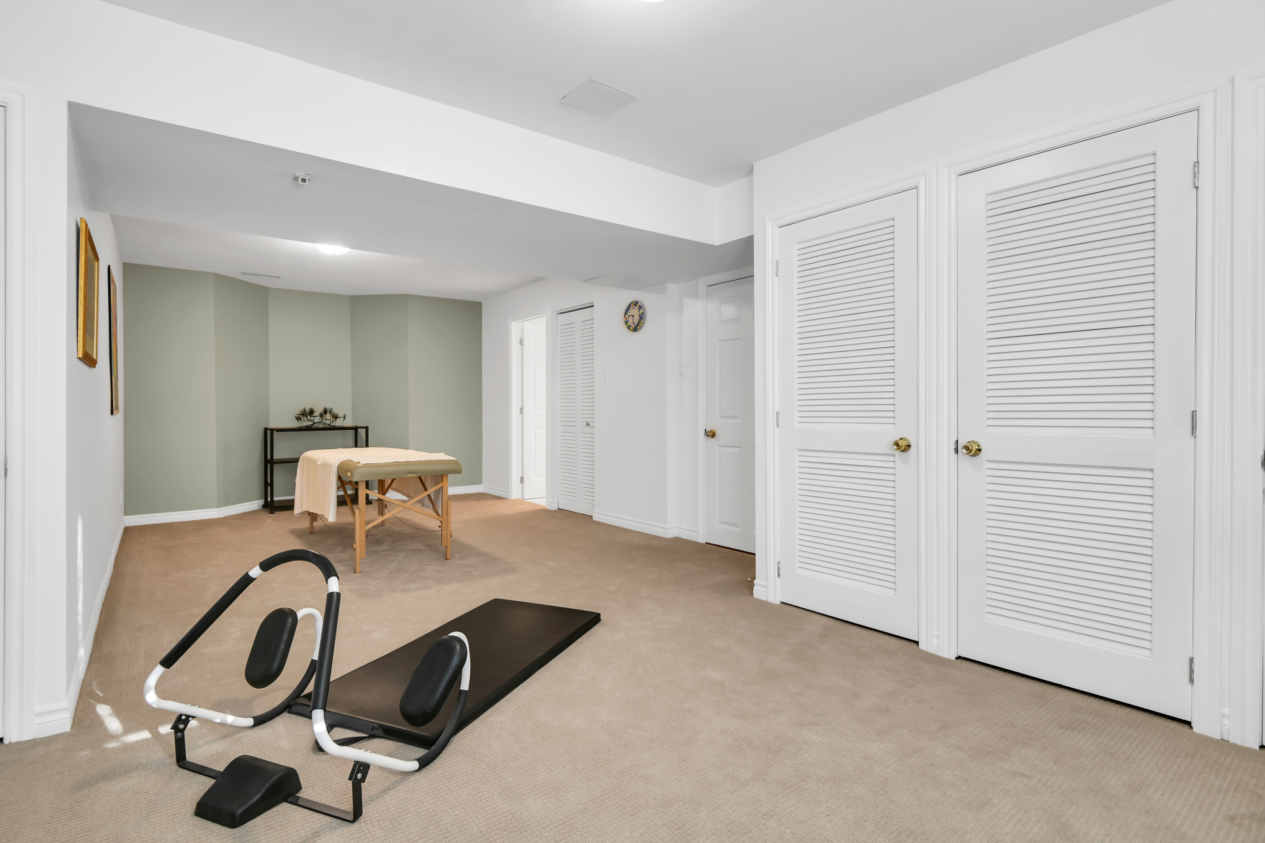 The next level boasts 2 well-proportioned bedrooms, with one currently designed as a dressing room featuring custom California closets, and the second bedroom features a vaulted ceiling, offering an airy sensibility. The primary is another 1/2 storey with a walk-in closet, upscale ensuite and attractive custom built-ins. The lower level is an excellent space for a home gym with a sauna and spa-like whirlpool tub for relaxing after a workout.