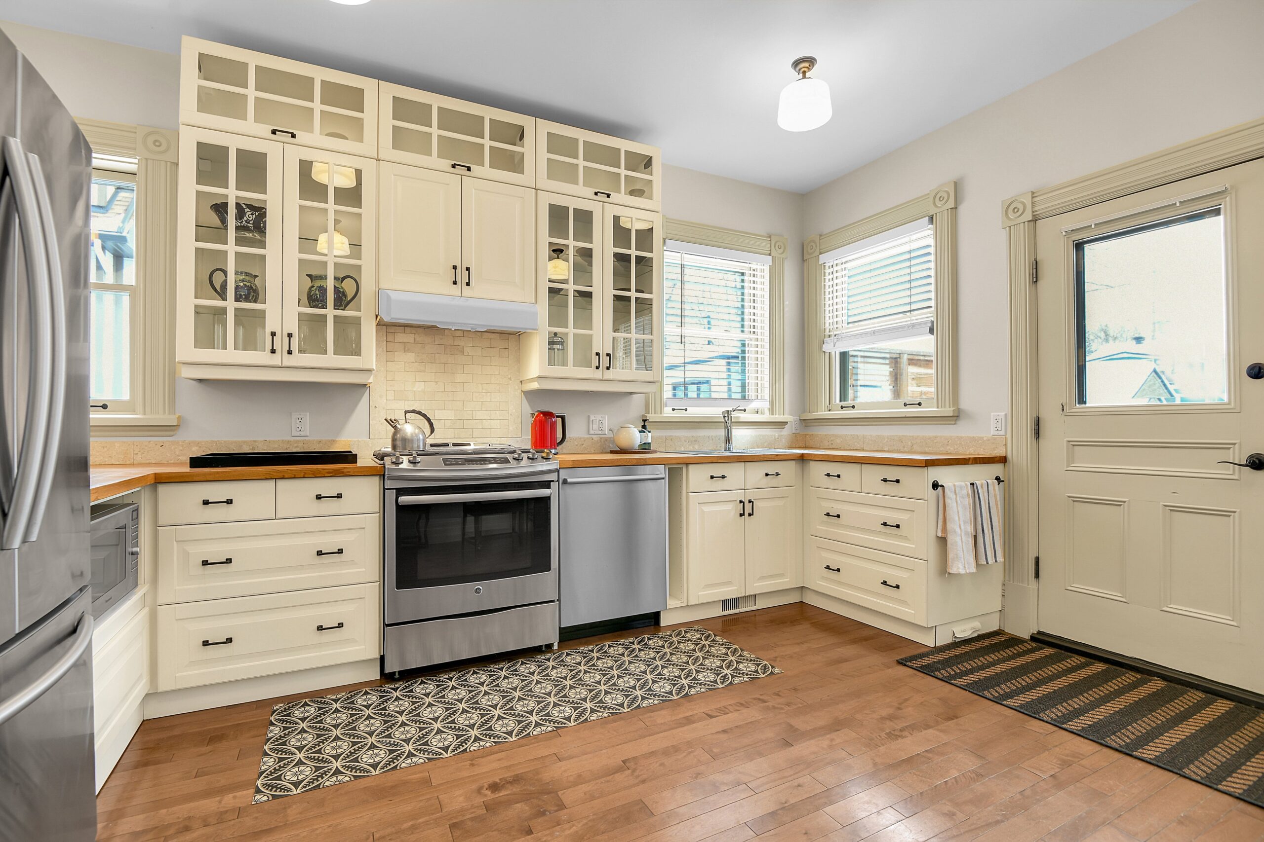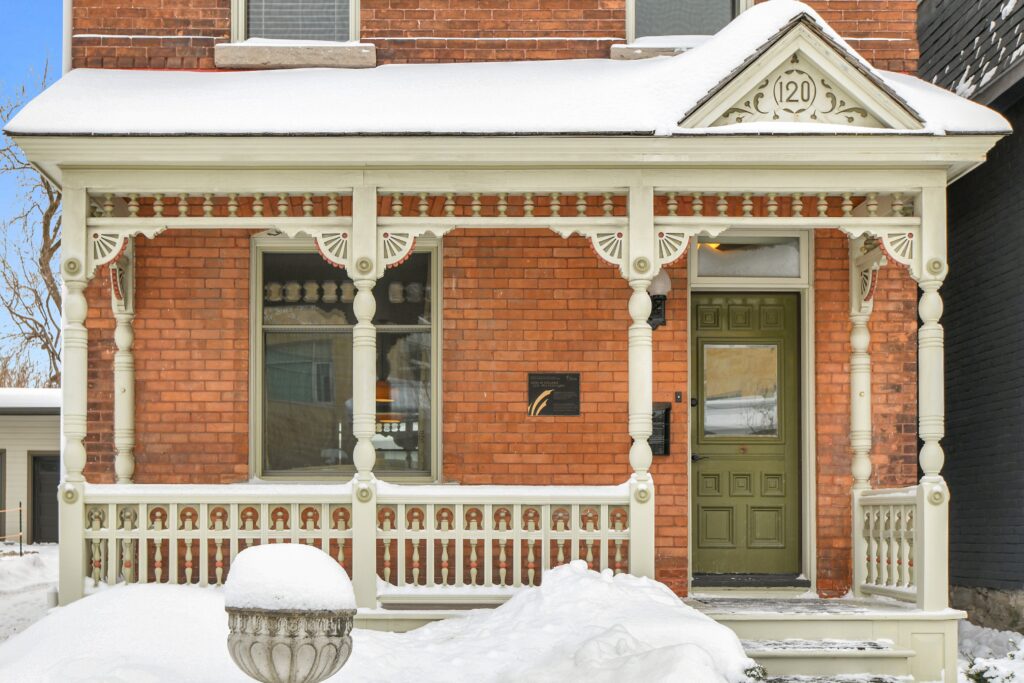 The exterior showcases charming gingerbread detailing, with original brickwork meticulously repointed and selectively replaced where required. The original front porch and façade were carefully restored and faithfully reproduced, while the rear façade has been updated with wood siding. The iconic original front door – complete with its charming bell ring-was preserved and relocated to the front entry. The east foundation wall has been recently excavated and professionally waterproofed.