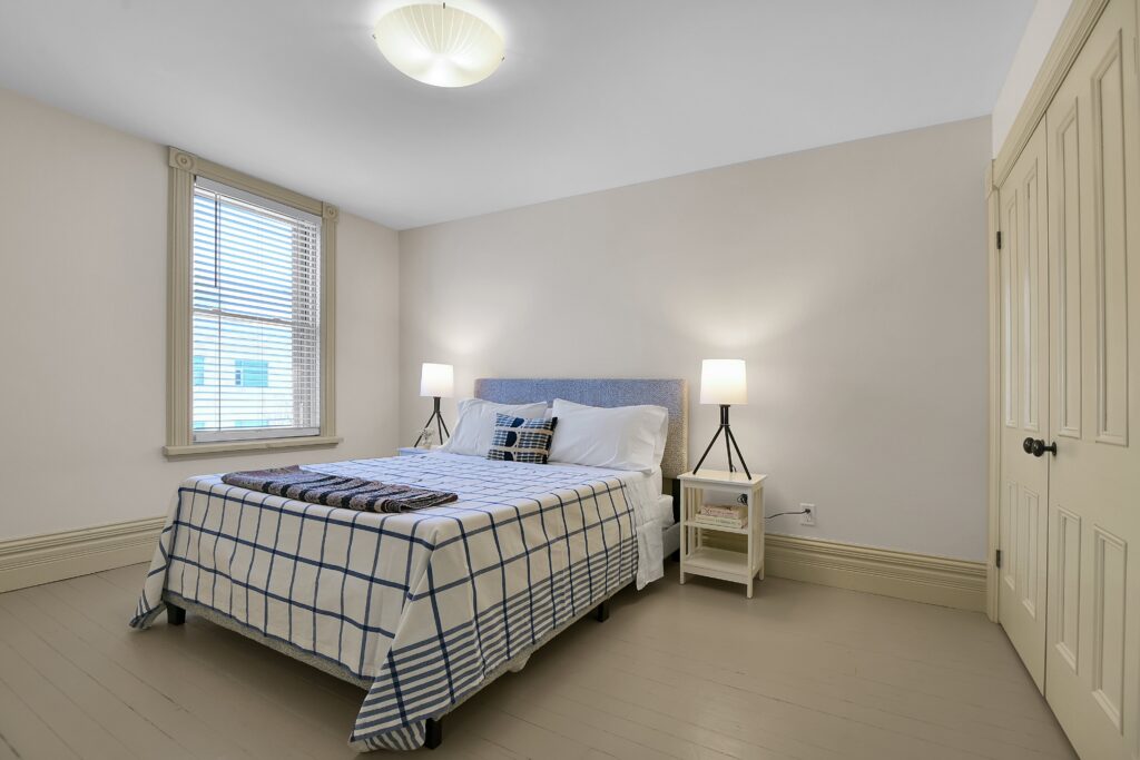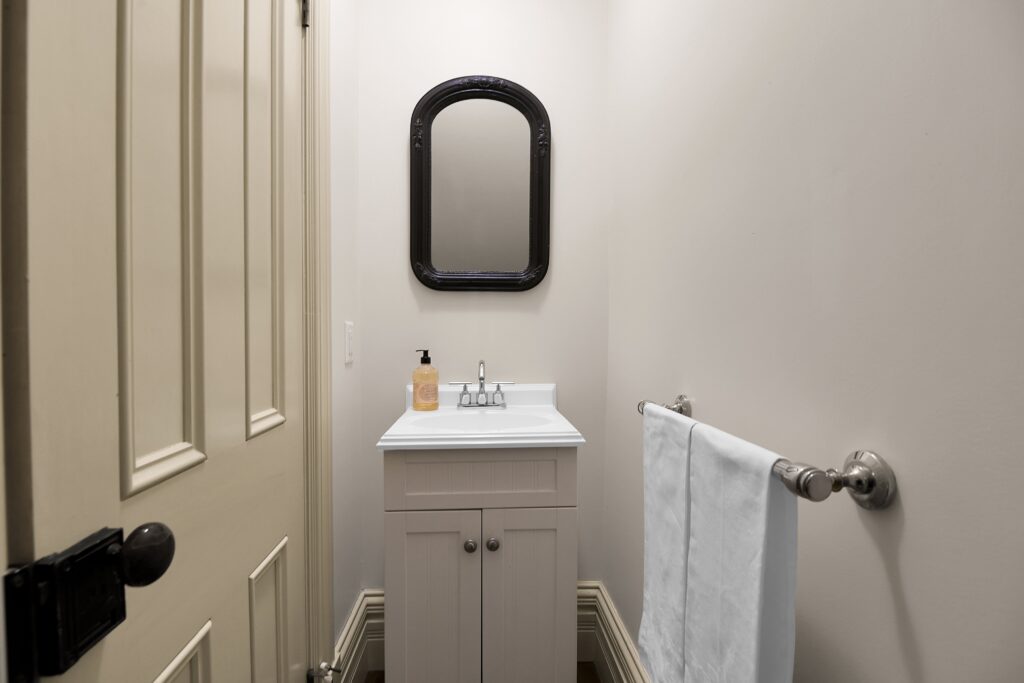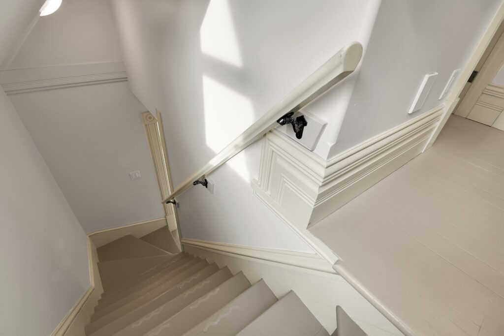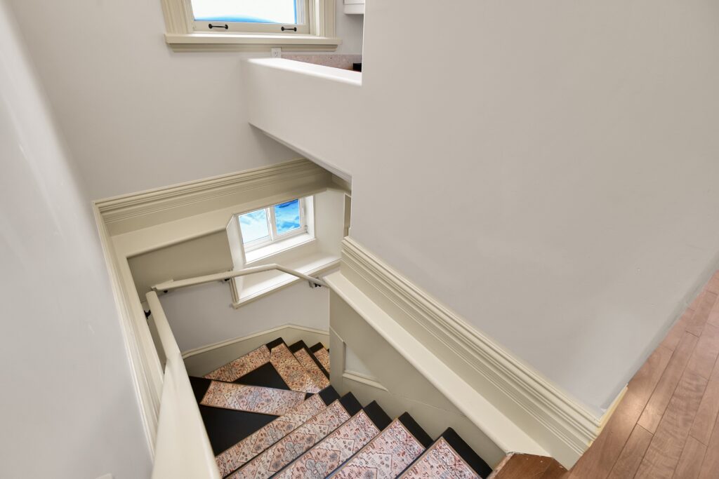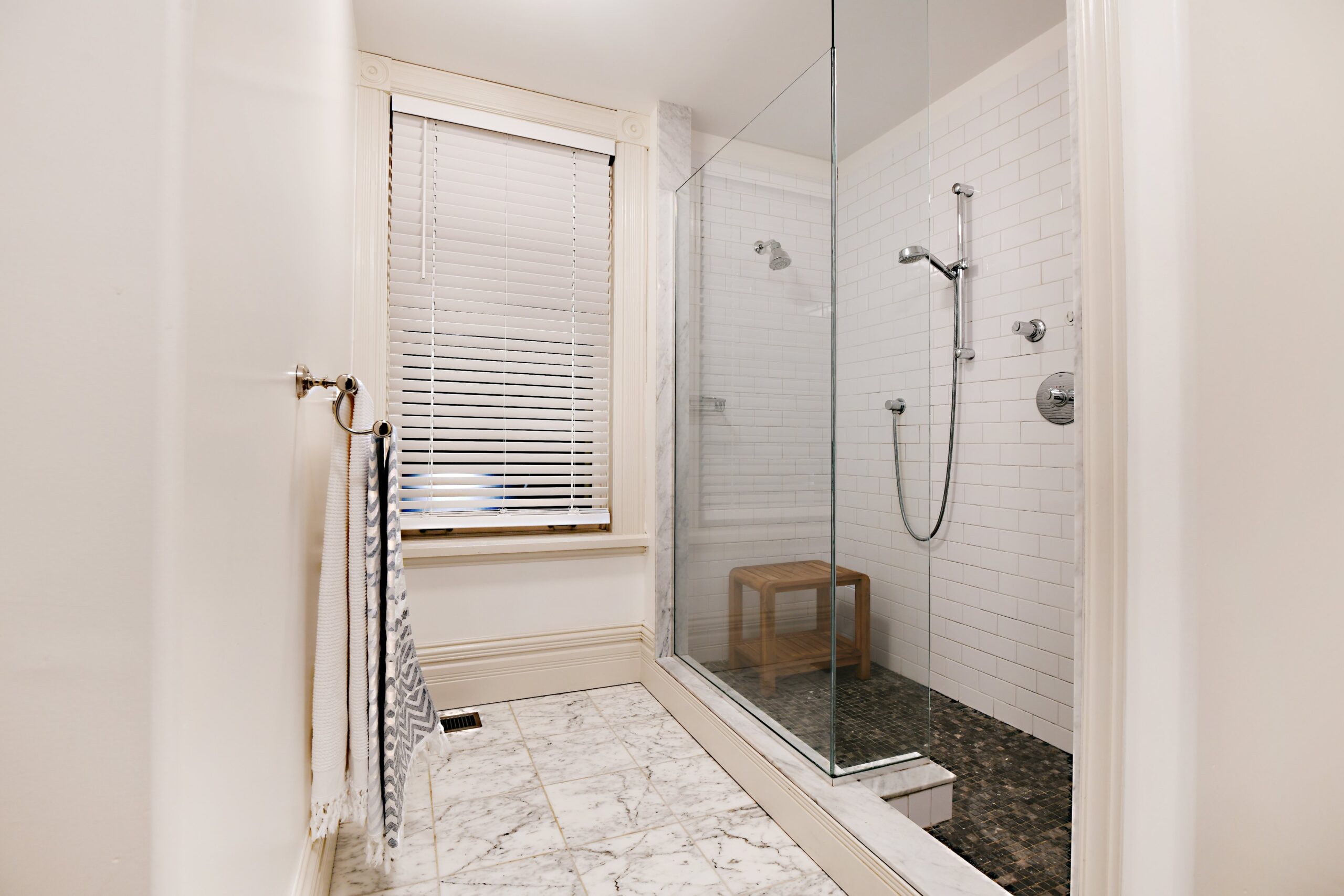 Inside, the home offers a rare combination of historic craftsmanship and modern infrastructure. The original staircase and handrails have been restored, complemented by custom solid-core interior doors, trims, and baseboards reproduced from original profiles found on site. Engineered hardwood floors grace the main level, while the original pine floors have been restored and reinstalled on the second and third levels. Comfort and efficiency were central to the renovation. Original hot water radiators were replaced with a modern forced-air heating and cooling system, supplemented by electric underfloor heating in both second-level bathrooms. Custom wood double-hung windows and new window sills on the east side further enhance performance and authenticity.