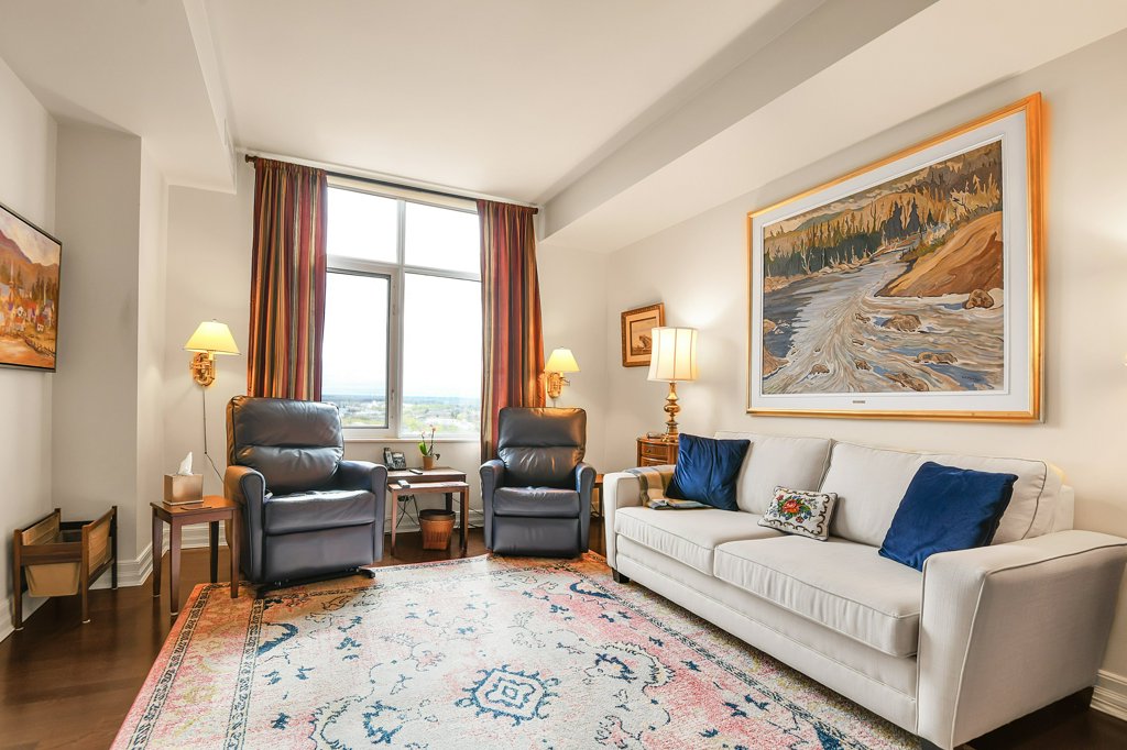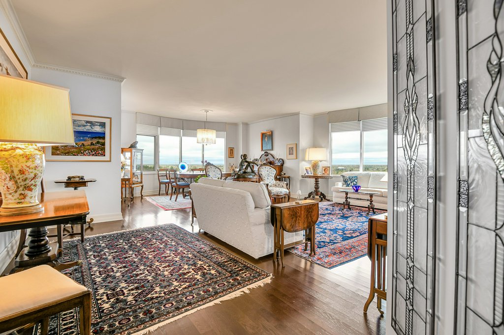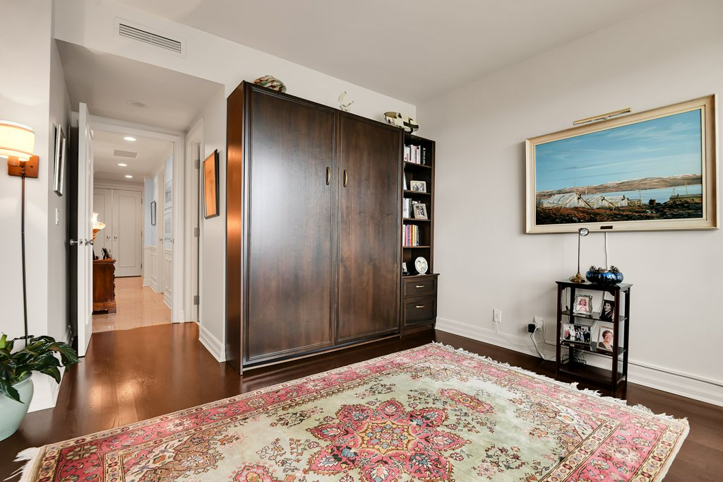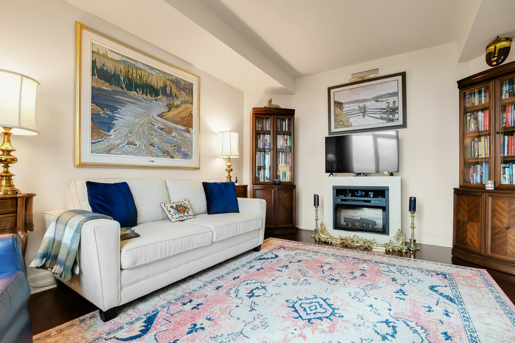 Rarely available and highly sought-after, this elegant 2,136 sq ft residence offers unparalleled views of the river and a private glassed-in balcony with no neighbours, ensuring ultimate privacy. This 2-bedroom plus den home showcases exquisite craftsmanship with hardwood flooring throughout and numerous layered details, including crown moulding, handsome trim, and wainscoting, all contributing to its refined atmosphere. Natural light pours into every room, enhancing the home’s comfortable elegance.