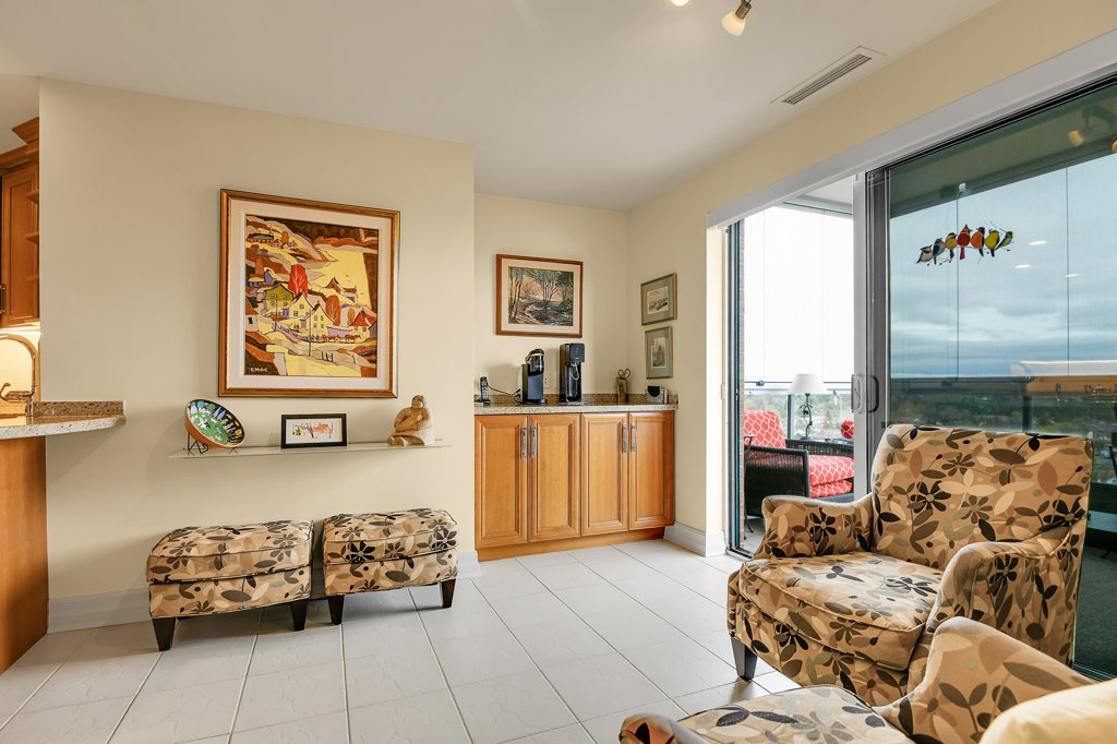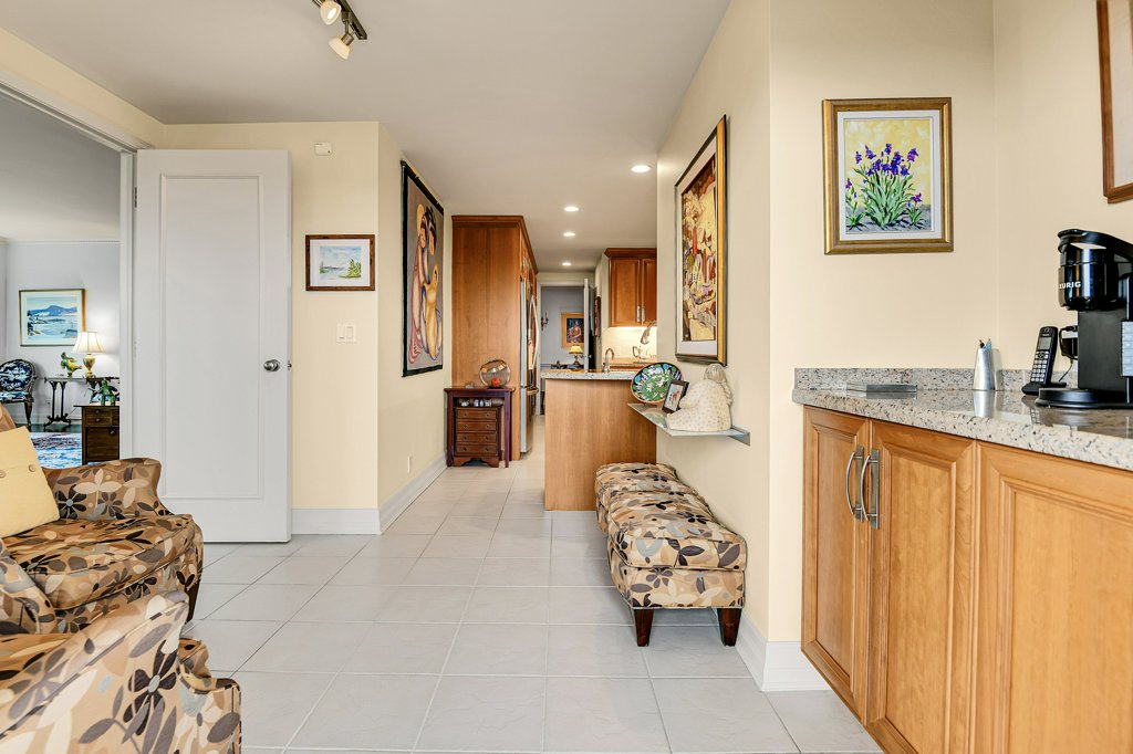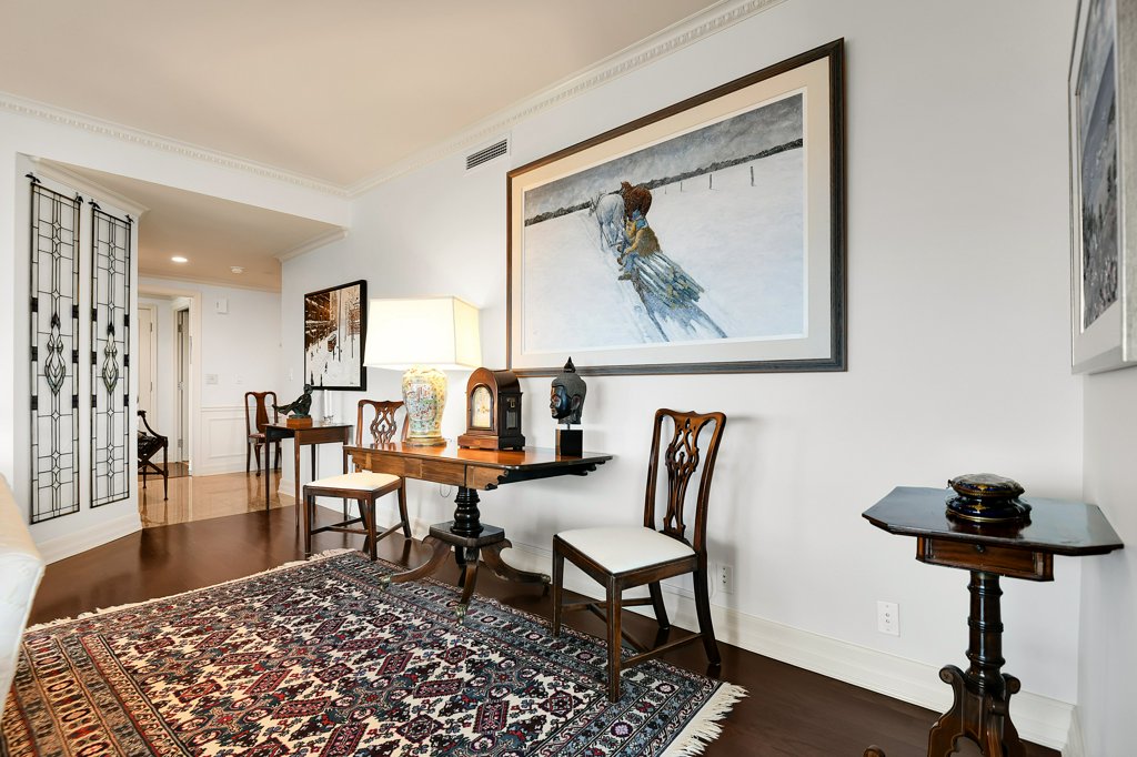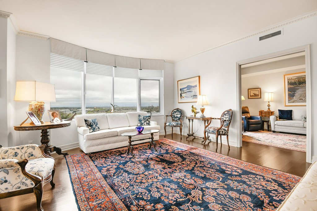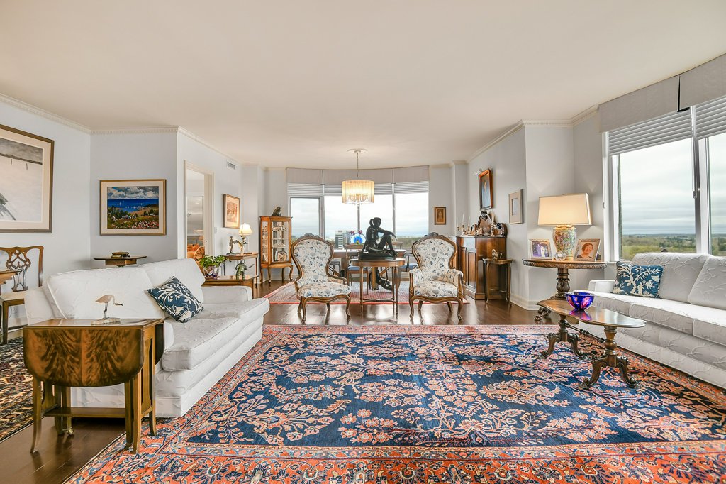 Rarely available and highly sought-after, this elegant 2,136 sq ft residence offers unparalleled views of the river and a private glassed-in balcony with no neighbours, ensuring ultimate privacy. This 2-bedroom plus den home showcases exquisite craftsmanship with hardwood flooring throughout and numerous layered details, including crown moulding, handsome trim, and wainscoting, all contributing to its refined atmosphere. Natural light pours into every room, enhancing the home’s comfortable elegance.