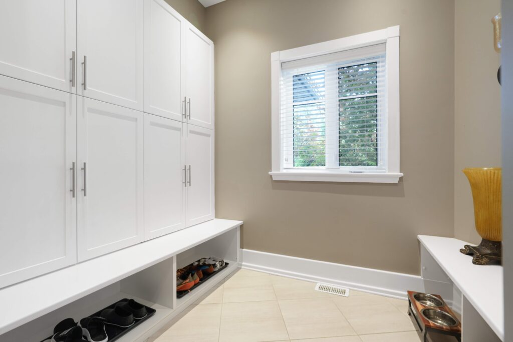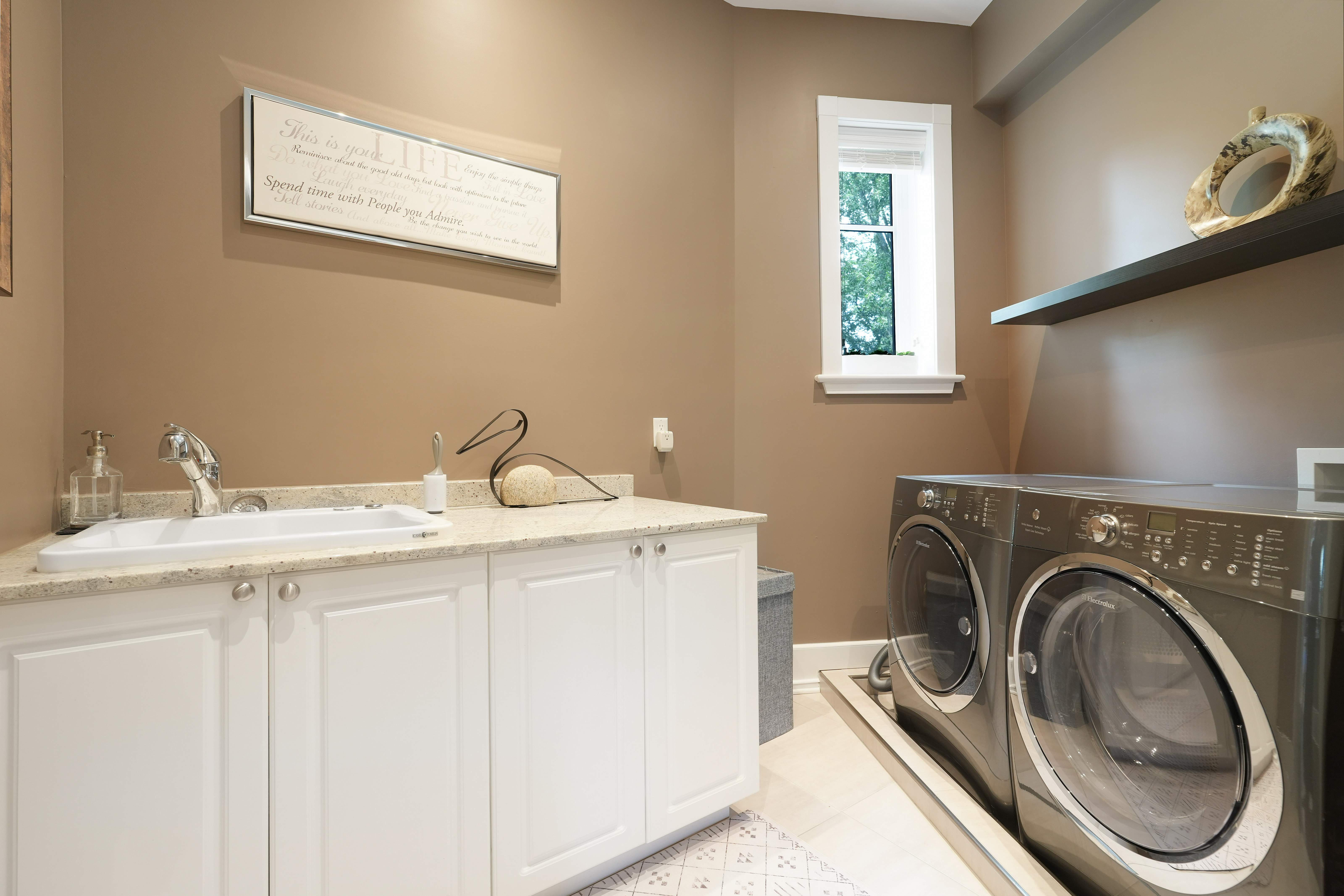 The adjoining family room is warm and inviting, designed for relaxed living and effortless connection to the kitchen. Practicality is also well considered with a spacious mudroom and laundry area just off the garage. The oversized heated double garage itself is a standout feature, offering soaring ceilings ideal for lifts, sleek epoxy flooring for easy maintenance, and a secondary garage door—perfect for seasonal furniture or equipment storage.