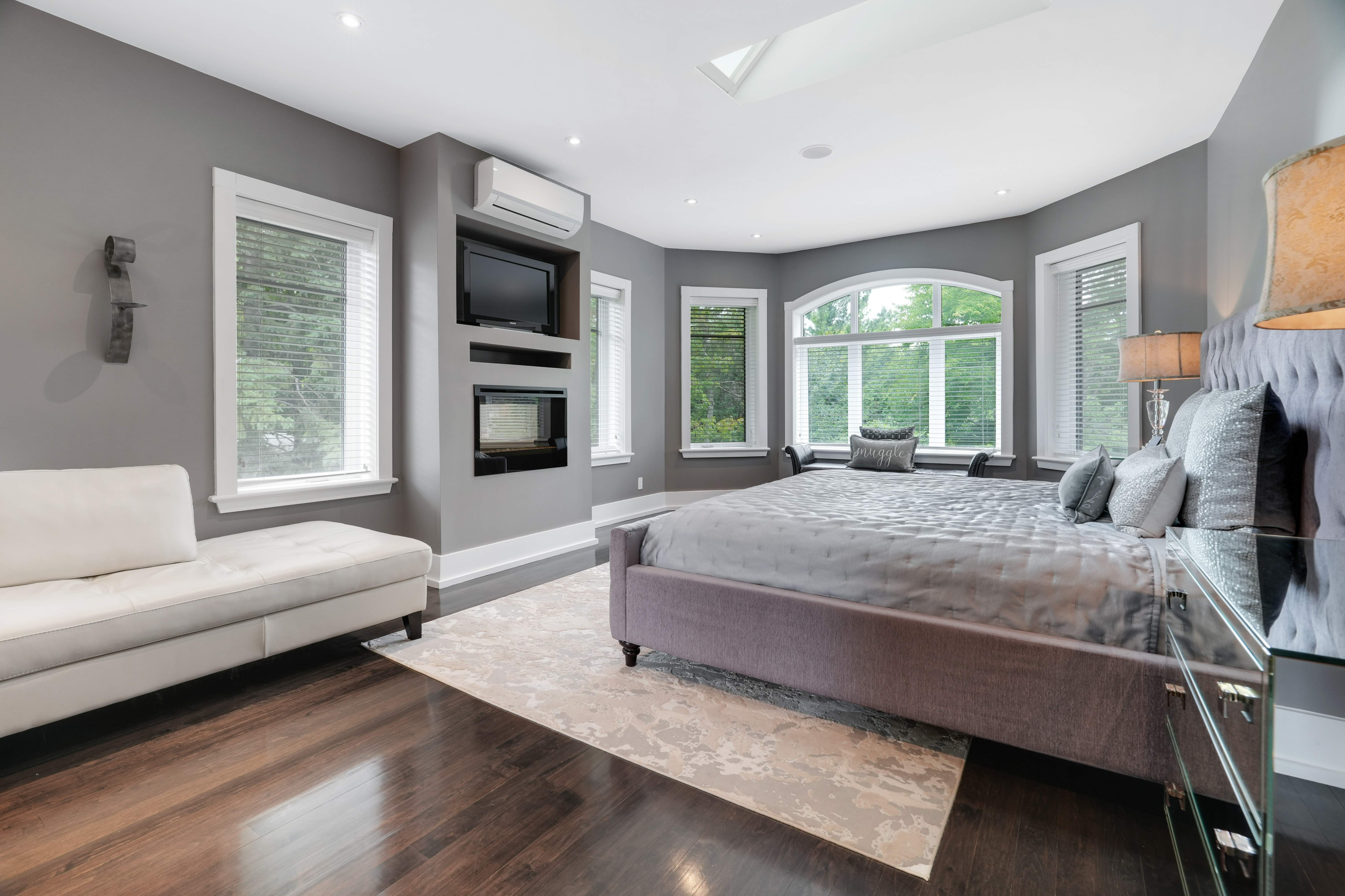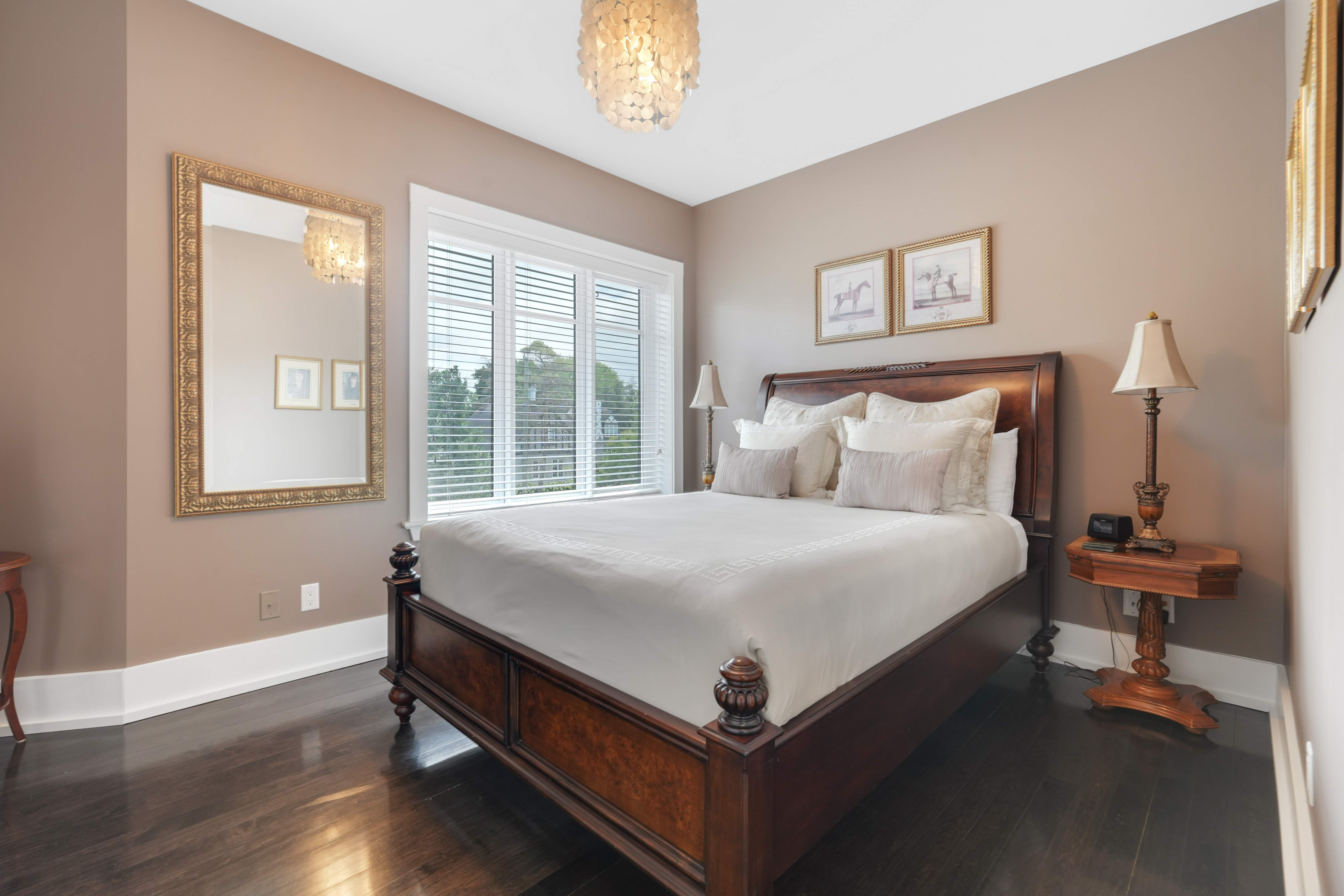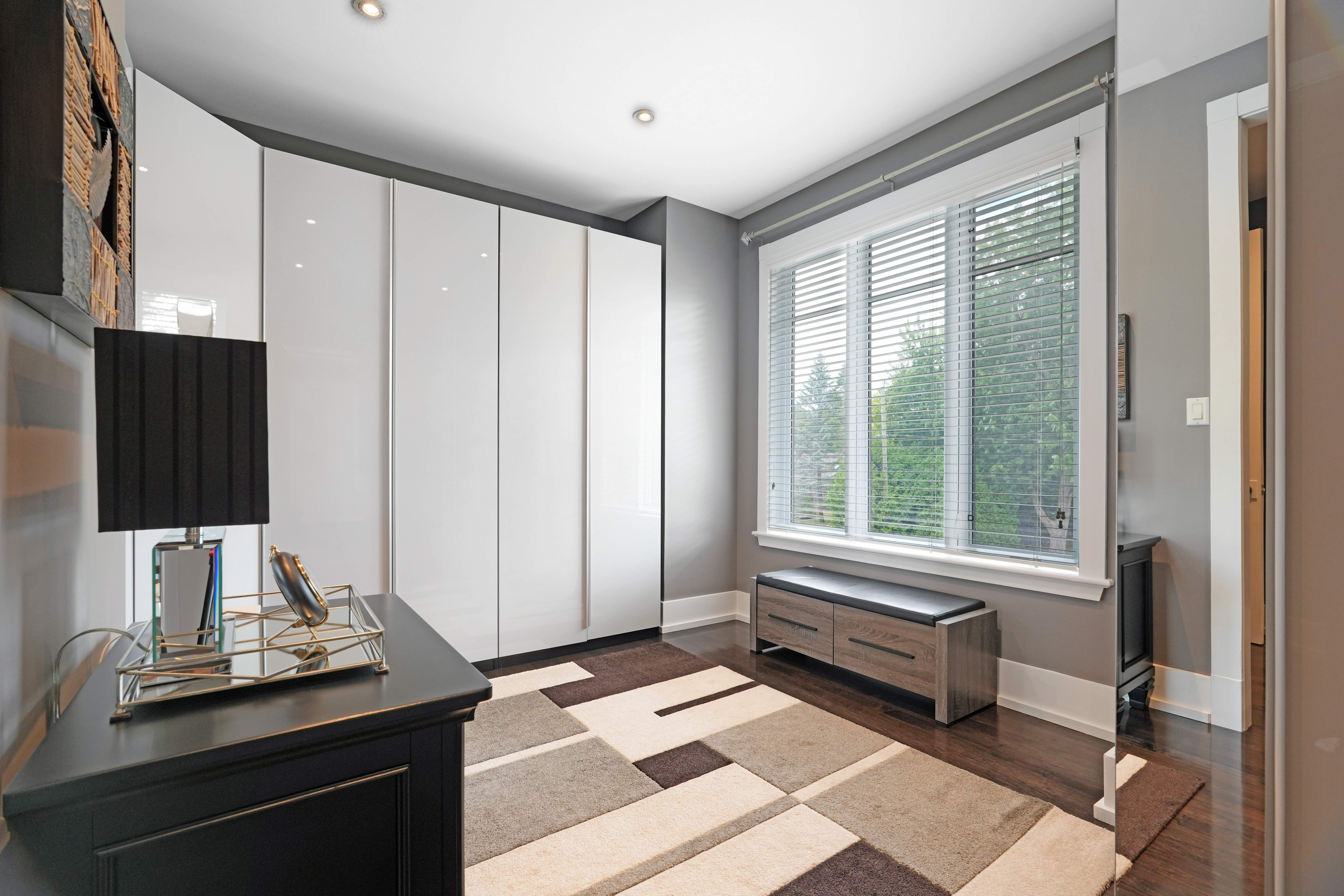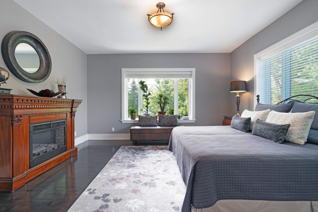 Upstairs, the second level offers generous living quarters with five bedrooms, thoughtfully arranged to balance comfort and privacy. The primary suite is a true retreat, featuring a cozy fireplace, a luxuriously appointed ensuite, and a private salon—currently used as an office, but adaptable as a dressing room, nursery, or sitting room. Two bedrooms share a well-planned Jack-and-Jill ensuite, another enjoys its own private bath, and the fourth is flooded with natural light with access to a nearby guest bath. Each room is designed with scale, light, and comfort in mind, making the entire floor perfect for family living.