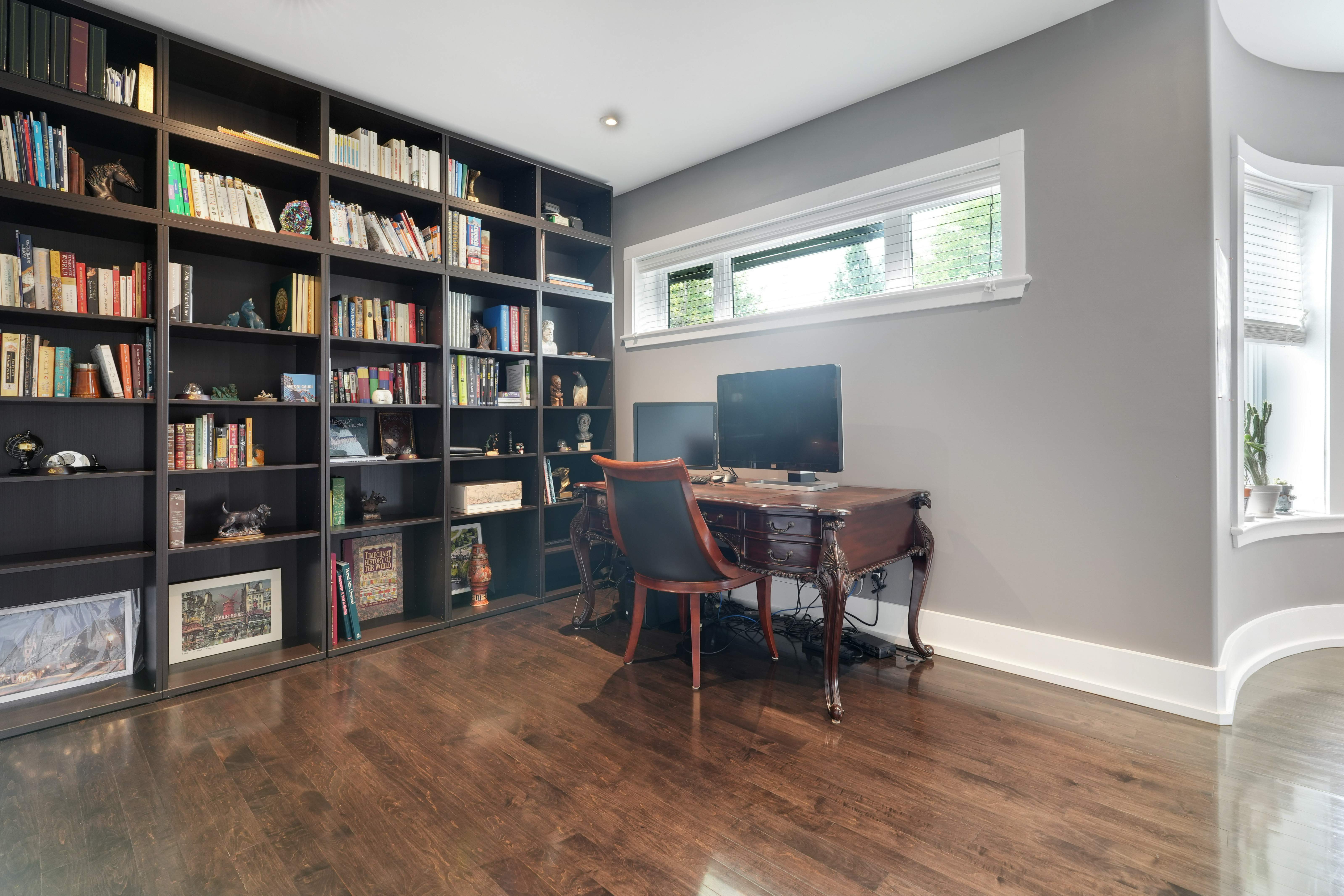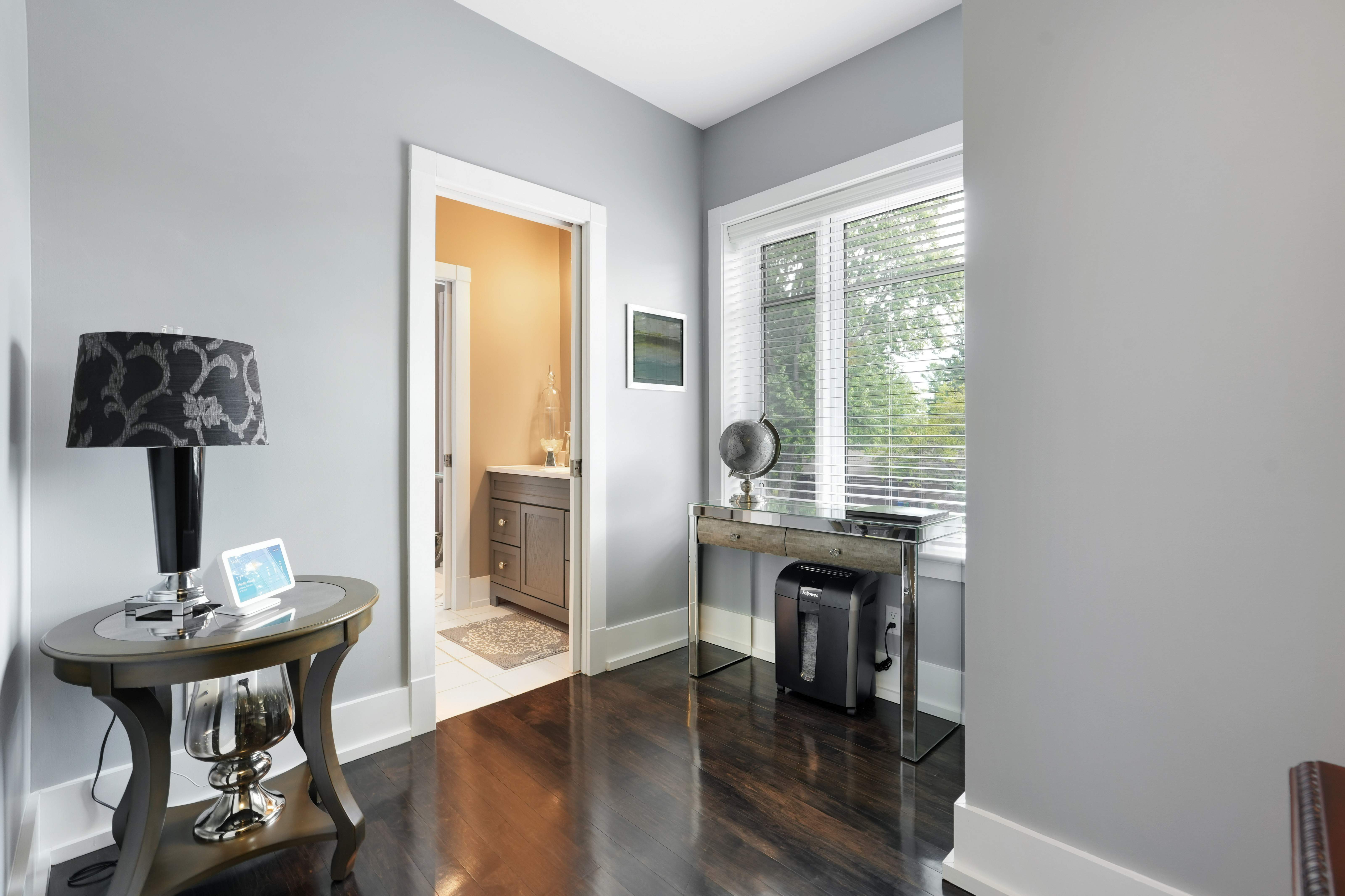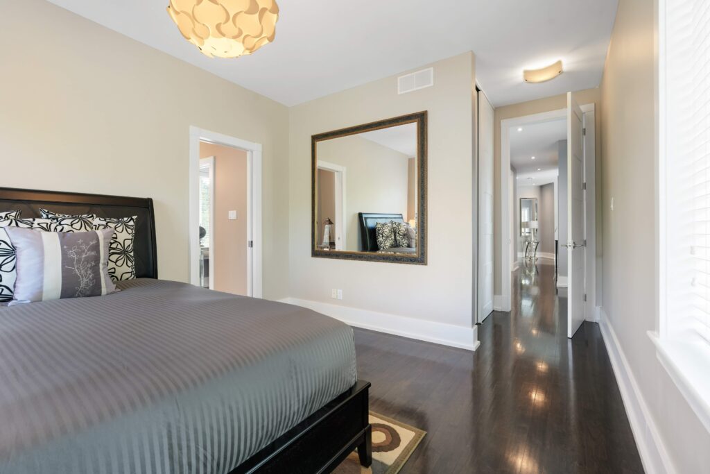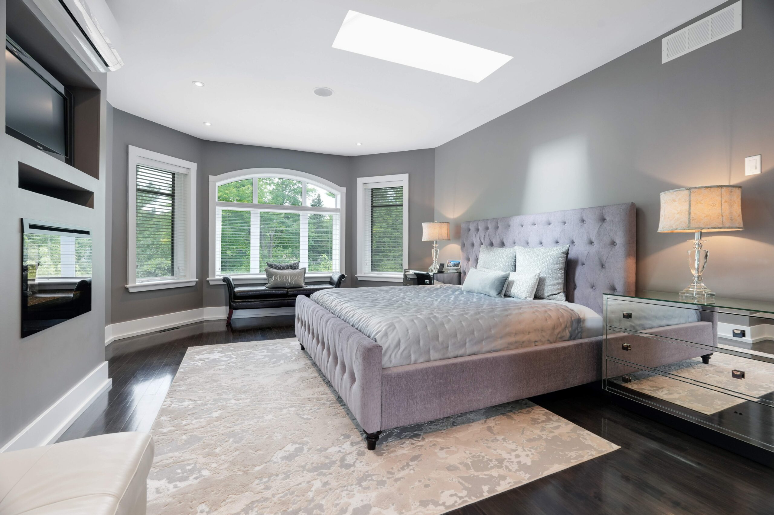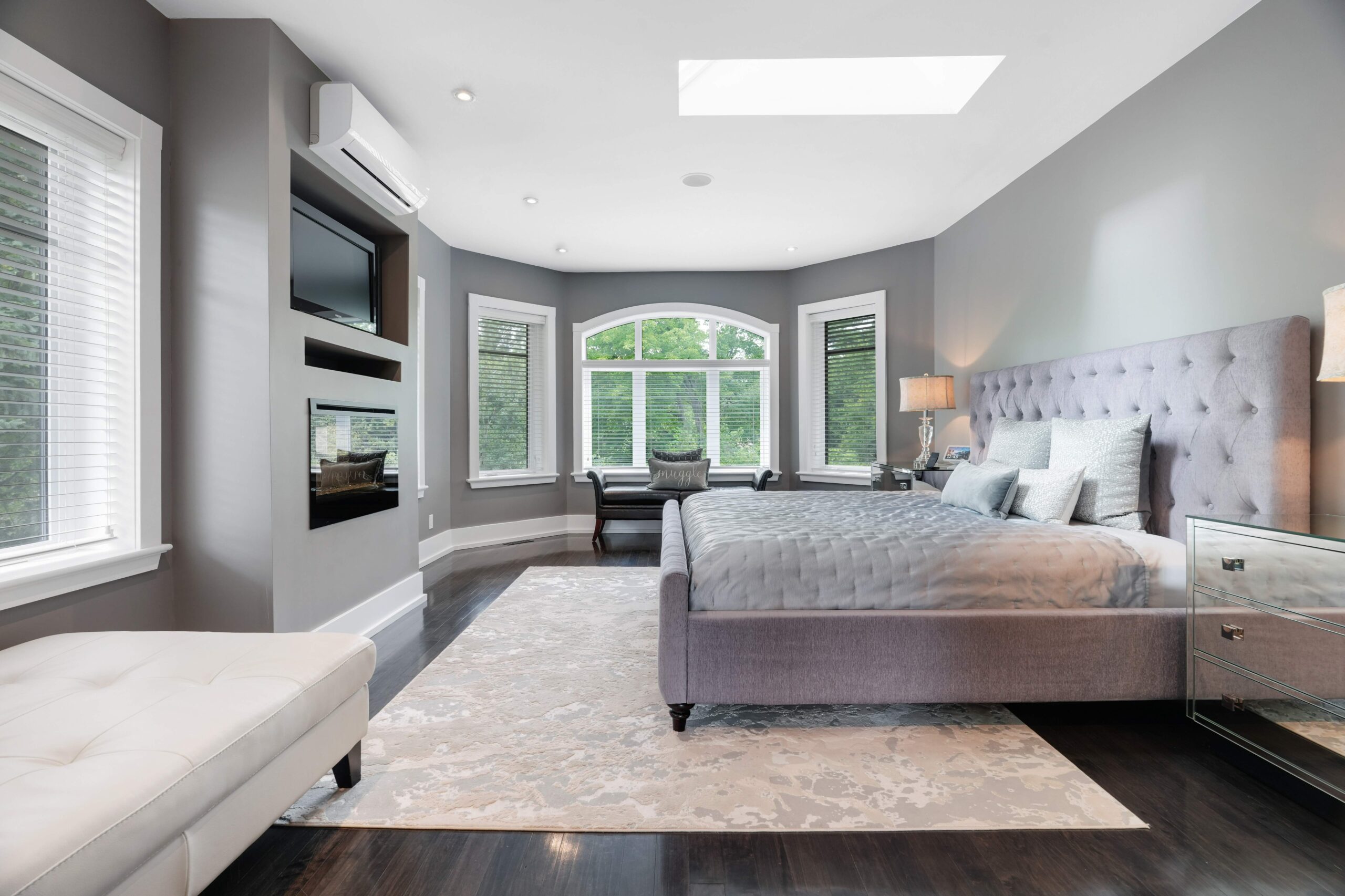 Upstairs, the second level offers generous living quarters with five bedrooms, thoughtfully arranged to balance comfort and privacy. The primary suite is a true retreat, featuring a cozy fireplace, a luxuriously appointed ensuite, and a private salon—currently used as an office, but adaptable as a dressing room, nursery, or sitting room. Two bedrooms share a well-planned Jack-and-Jill ensuite, another enjoys its own private bath, and the fourth is flooded with natural light with access to a nearby guest bath. Each room is designed with scale, light, and comfort in mind, making the entire floor perfect for family living.