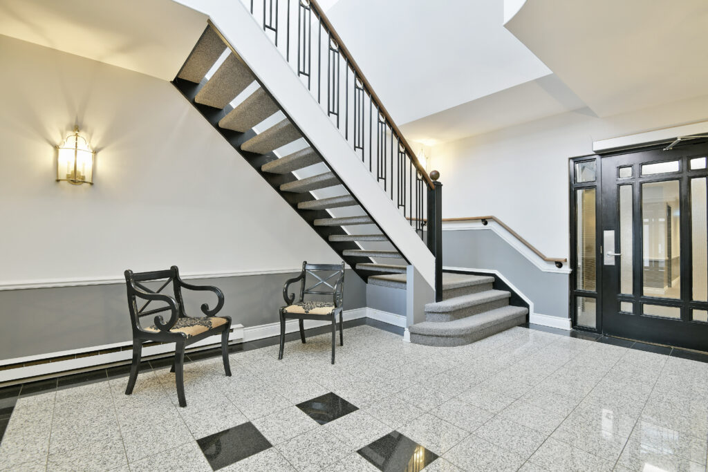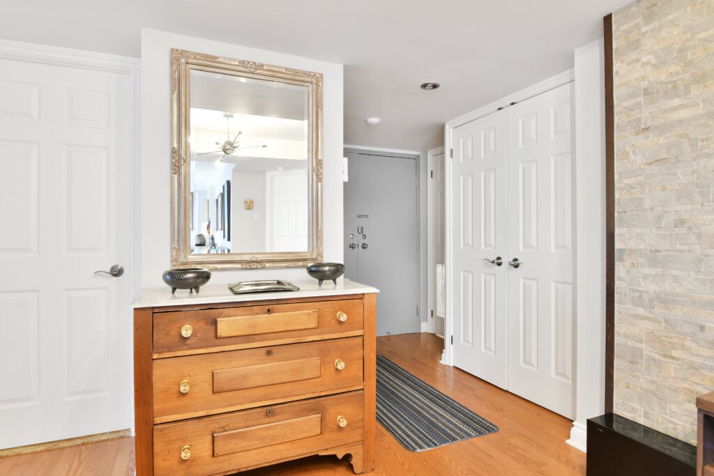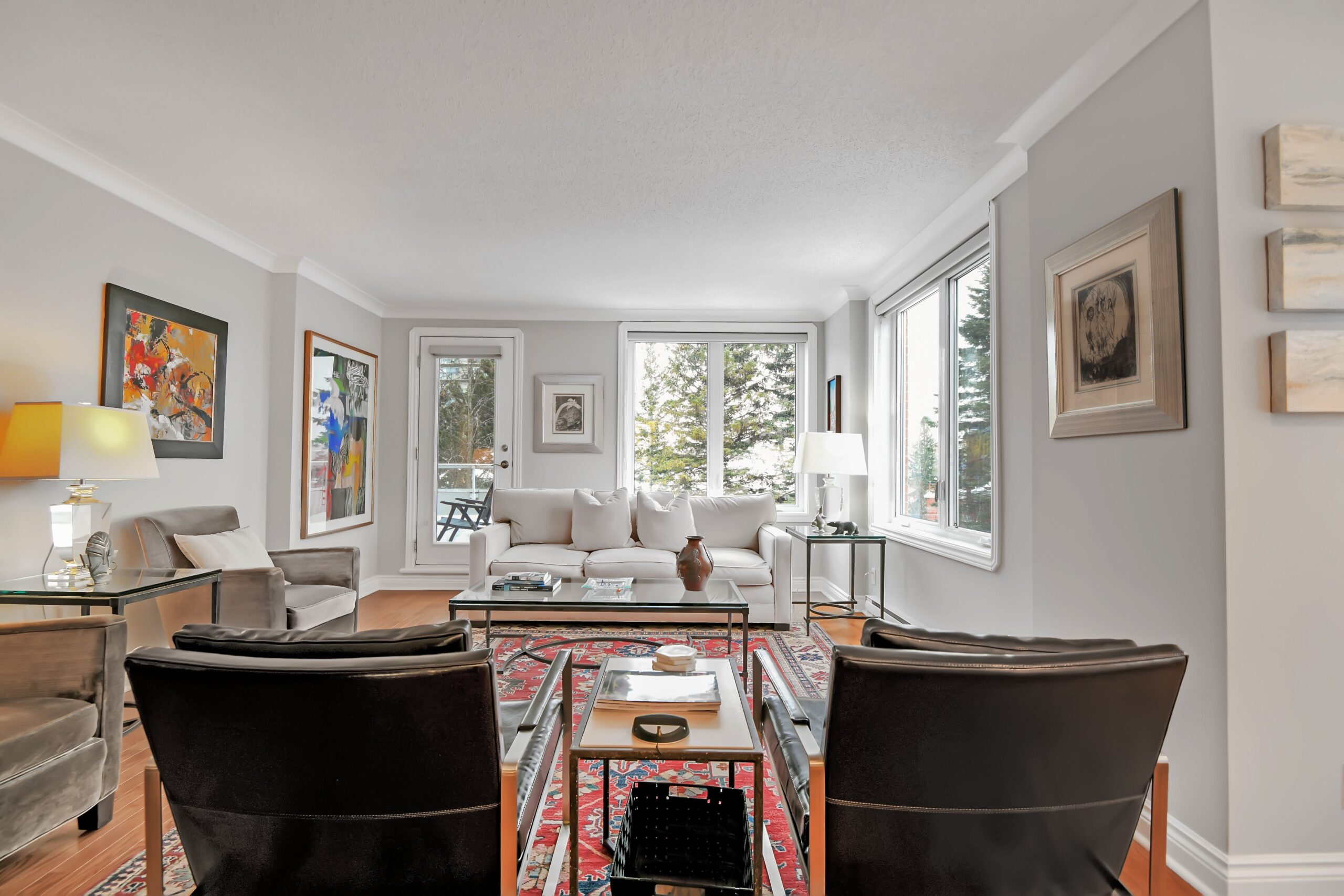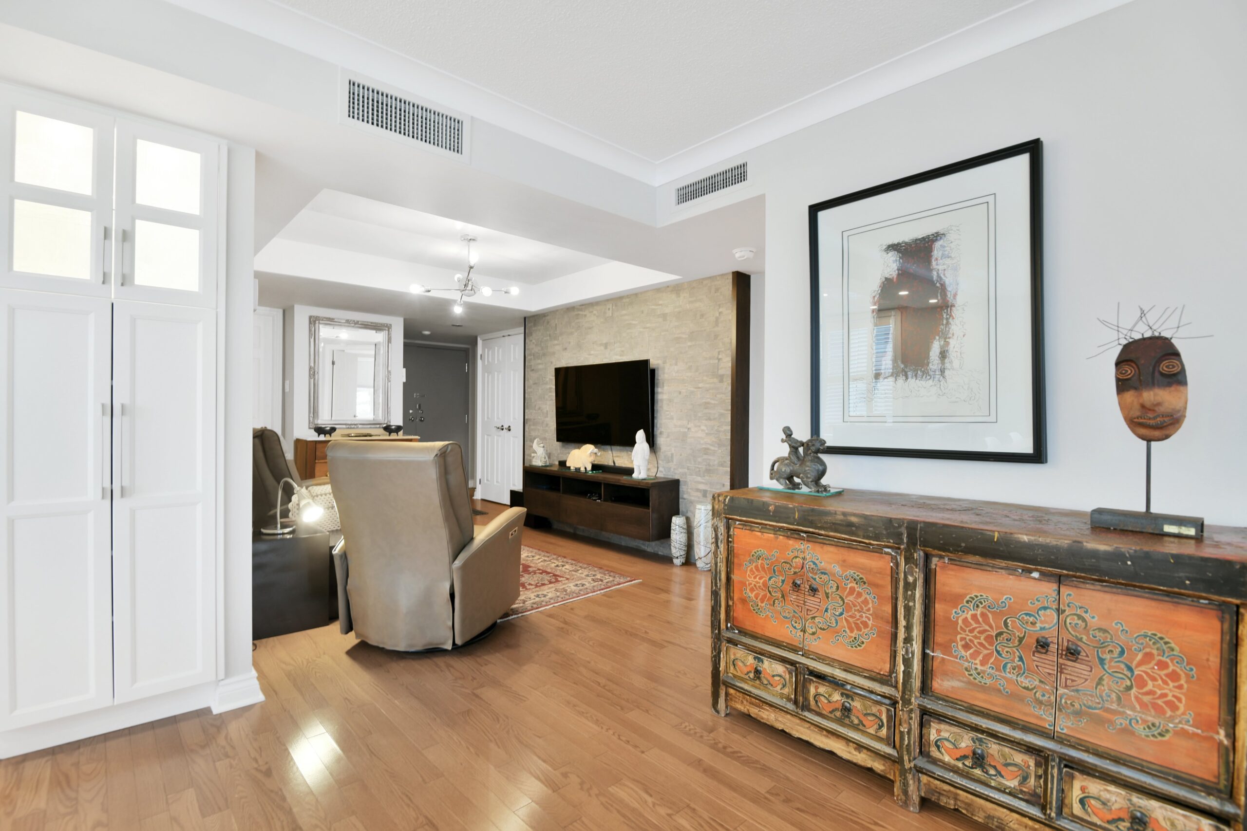Bright and sunny with southwest exposure, this space is current and on-trend. Flooded with natural light all day long, it features balcony views of the fountain and Peace Tower views from the guest room. Reimagined with panache, it features warm engineered hardwood floors, a stylish white island kitchen detailed with handmade subway tiles, a wine fridge, Bosch appliances and white quartz counters. Two entrances provide access to the balcony that can be sheltered from sun and rain with a bistro-like awning. The floor plan works well with a separate dining area as well as space for enjoying movie nights with a more formal space in which to entertain. Two bedrooms (one currently functions as an office)and two baths are designed to allow for privacy and “away space.”The primary suite is well-scaled with additional access to the balcony, a walk-in closet, and a luxe 5-piece ensuite finished in luxe Carrara marble.