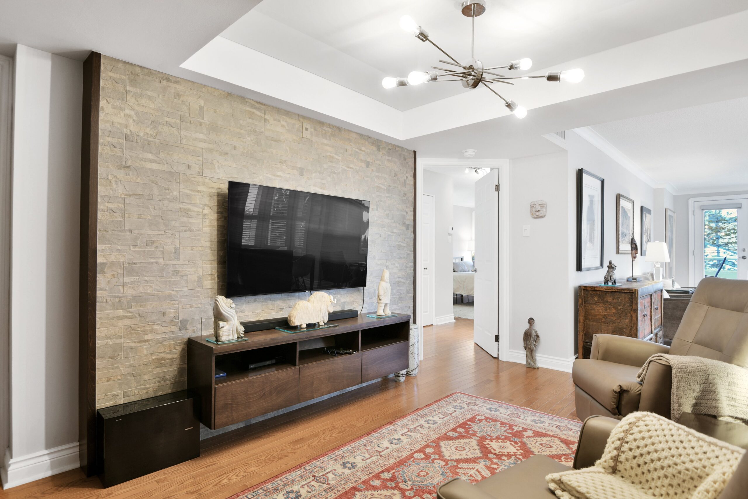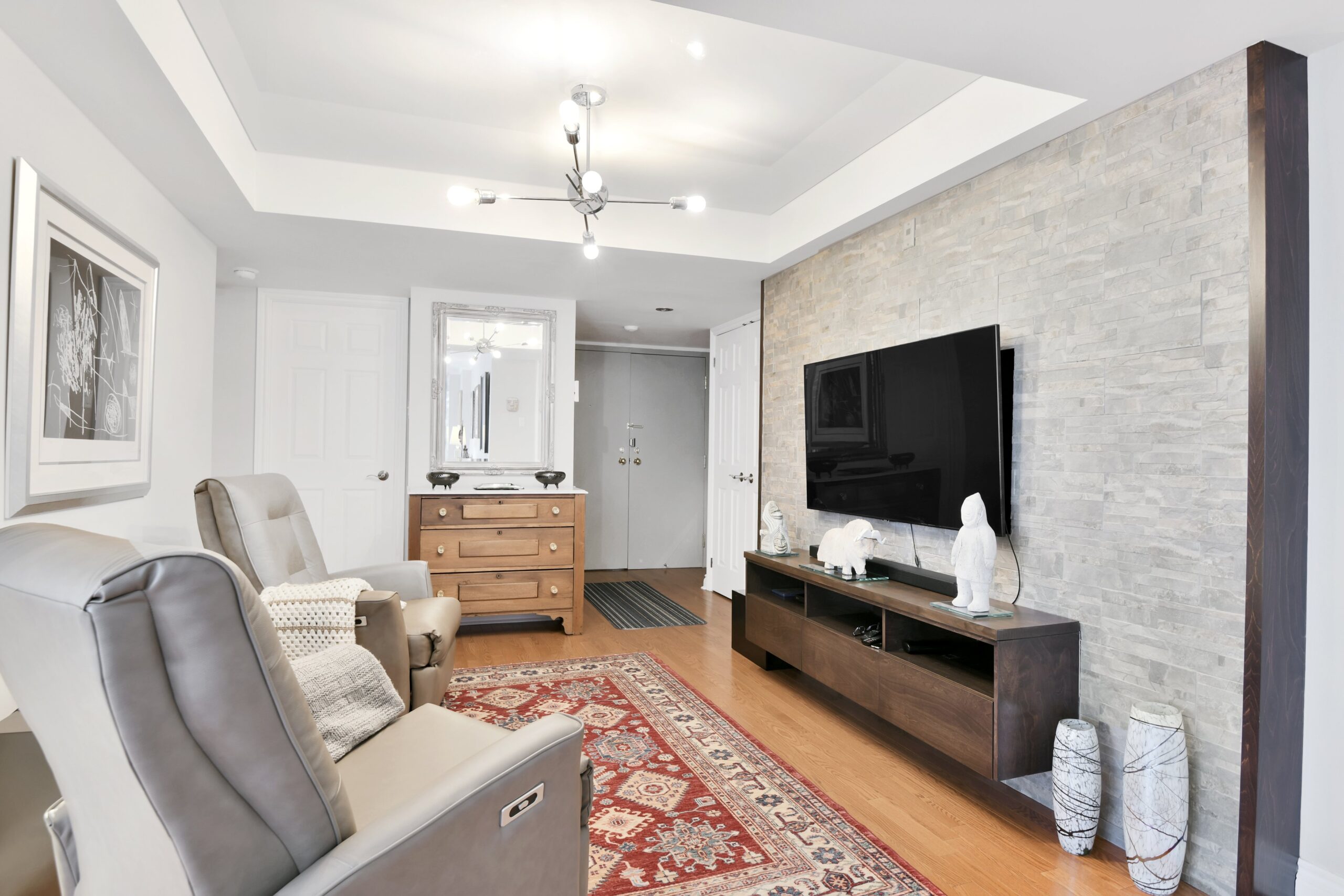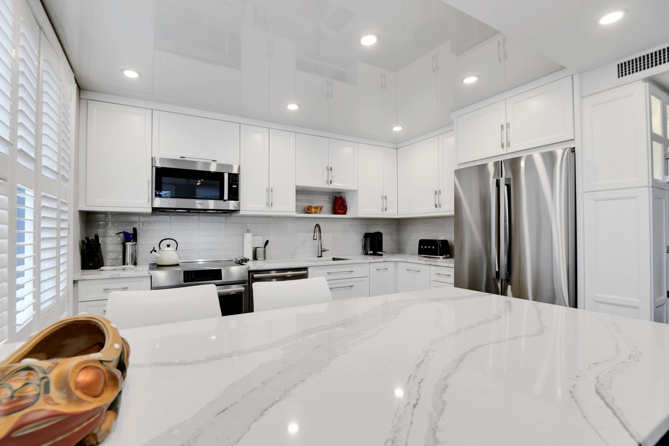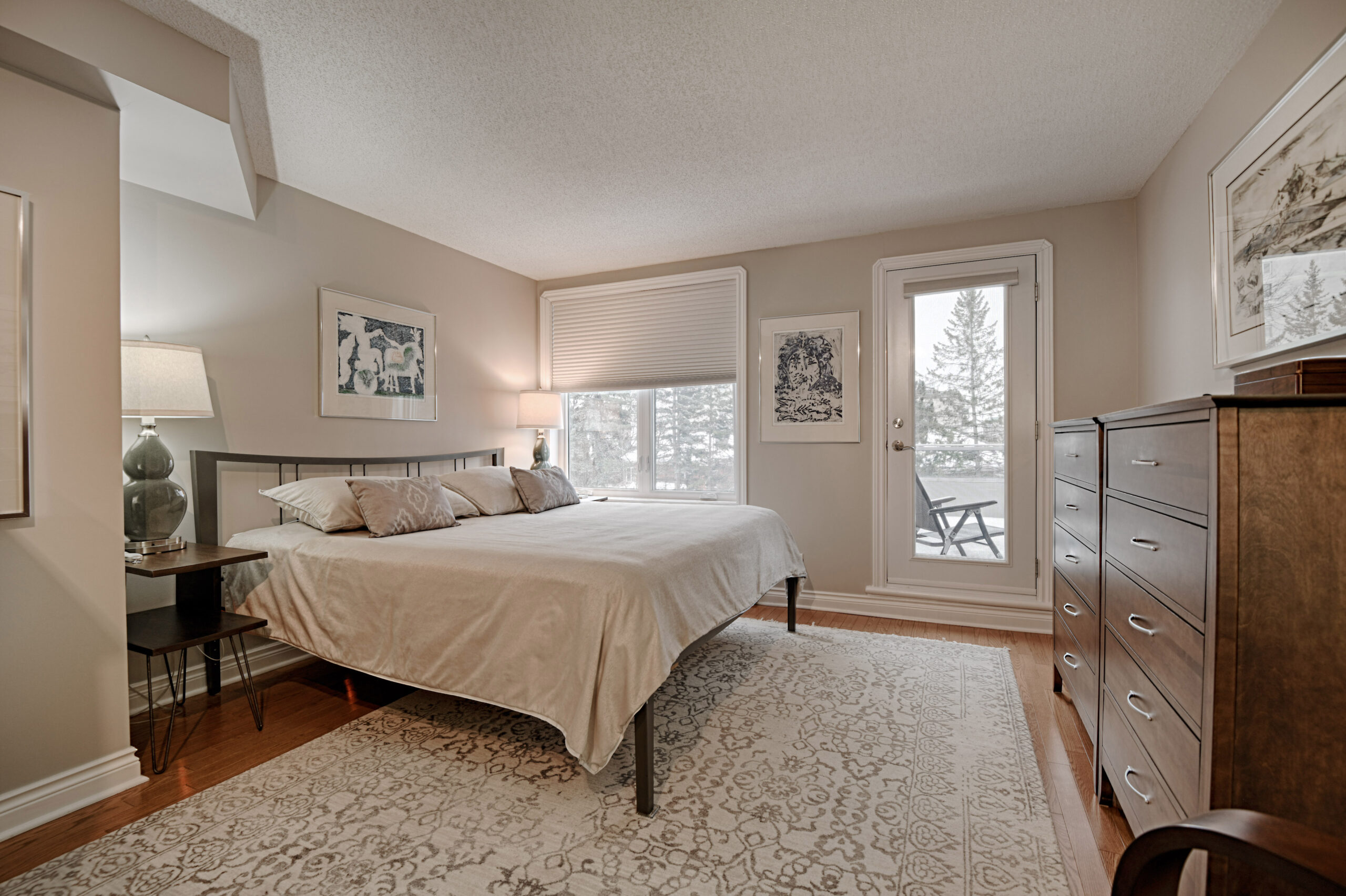 Bright and sunny with southwest exposure, this space is current and on-trend. Flooded with natural light all day long, it features balcony views of the fountain and Peace Tower views from the guest room. Reimagined with panache, it features warm engineered hardwood floors, a stylish white island kitchen detailed with handmade subway tiles, a wine fridge, Bosch appliances and white quartz counters. Two entrances provide access to the balcony that can be sheltered from sun and rain with a bistro-like awning. The floor plan works well with a separate dining area as well as space for enjoying movie nights with a more formal space in which to entertain. Two bedrooms (one currently functions as an office)and two baths are designed to allow for privacy and “away space.”The primary suite is well-scaled with additional access to the balcony, a walk-in closet, and a luxe 5-piece ensuite finished in luxe Carrara marble.