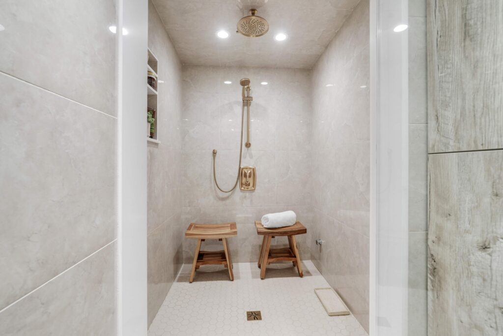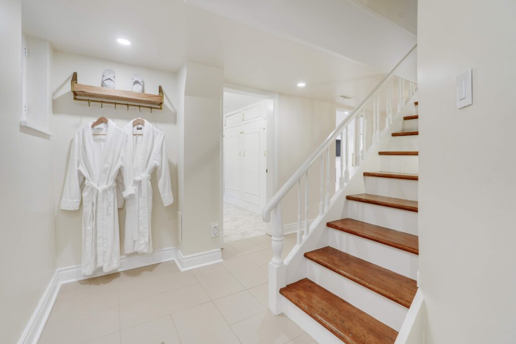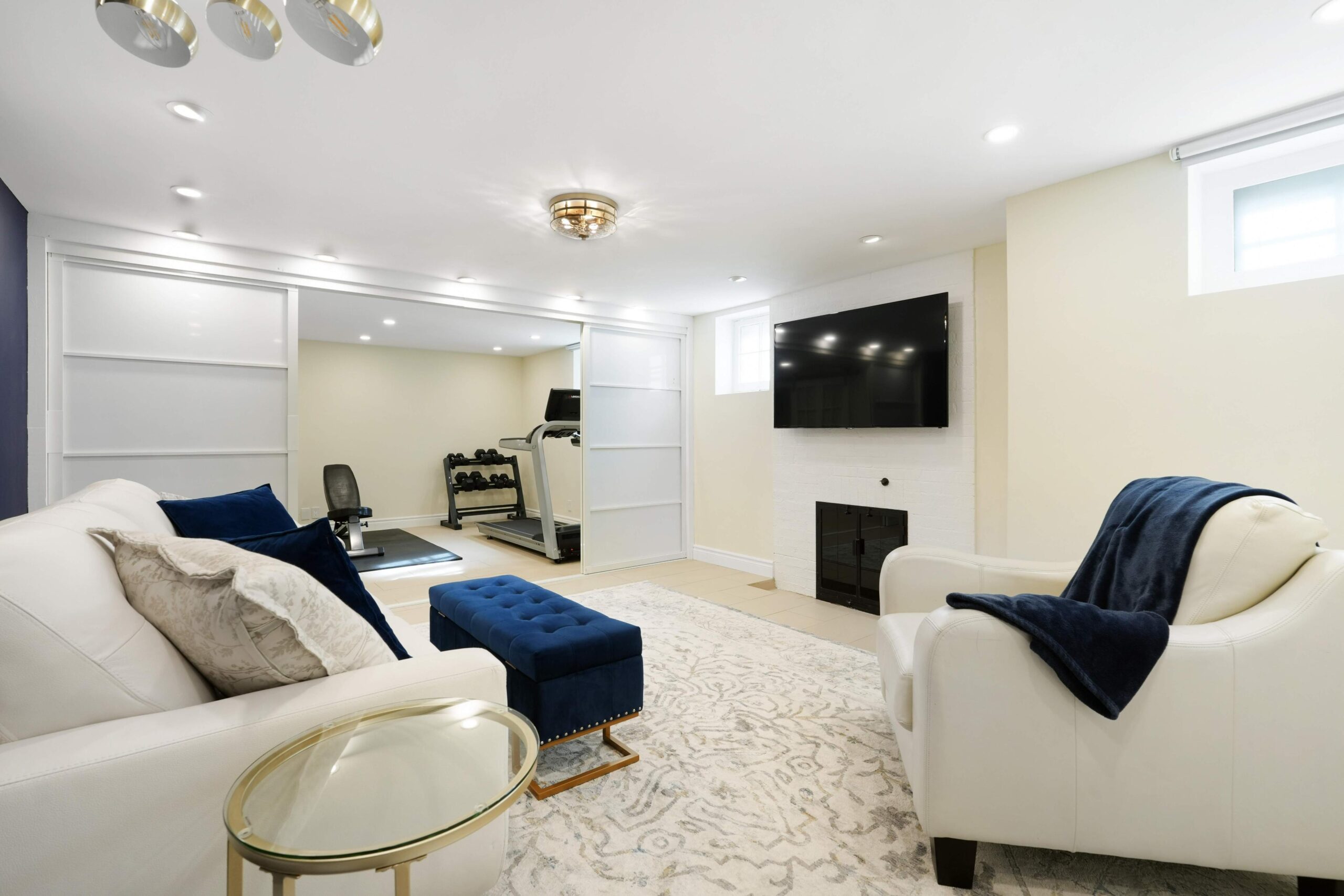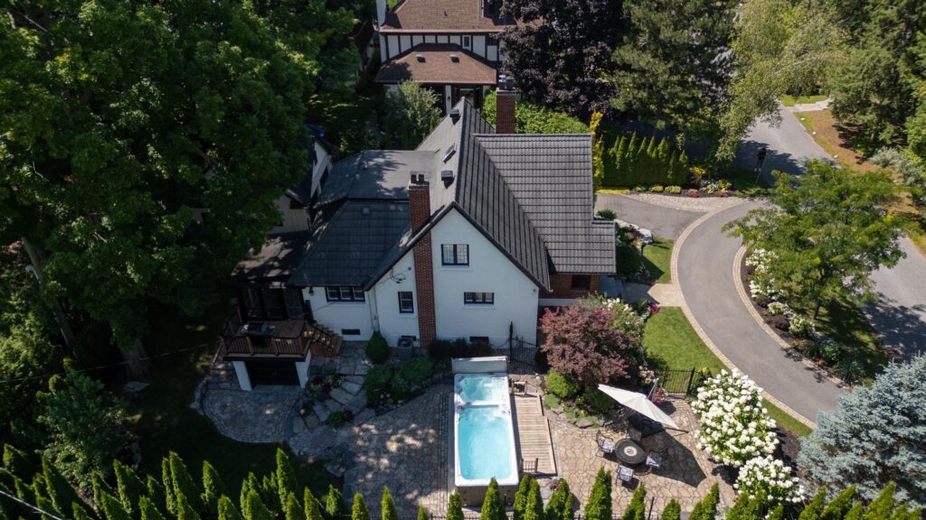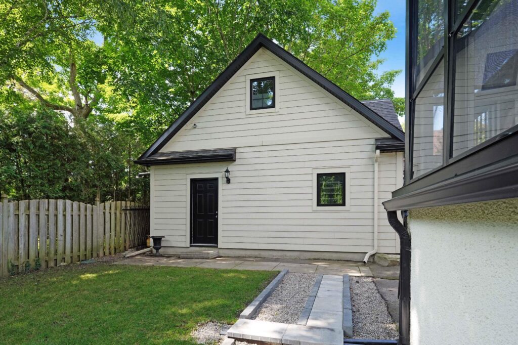 The lower level has been thoughtfully redesigned to function as a true home spa. With heated floors, a three-piece bath, and a steam shower, this space is especially valued in the winter months when paired with the outdoor swim spa. A lower-level garage—currently used for storage—offers practical in-and-out access, while a newer detached double-car garage provides exceptional functionality. With its high ceilings, loft space, and the potential to accommodate car lifts, it is an ideal feature for enthusiasts or those seeking additional storage solutions.