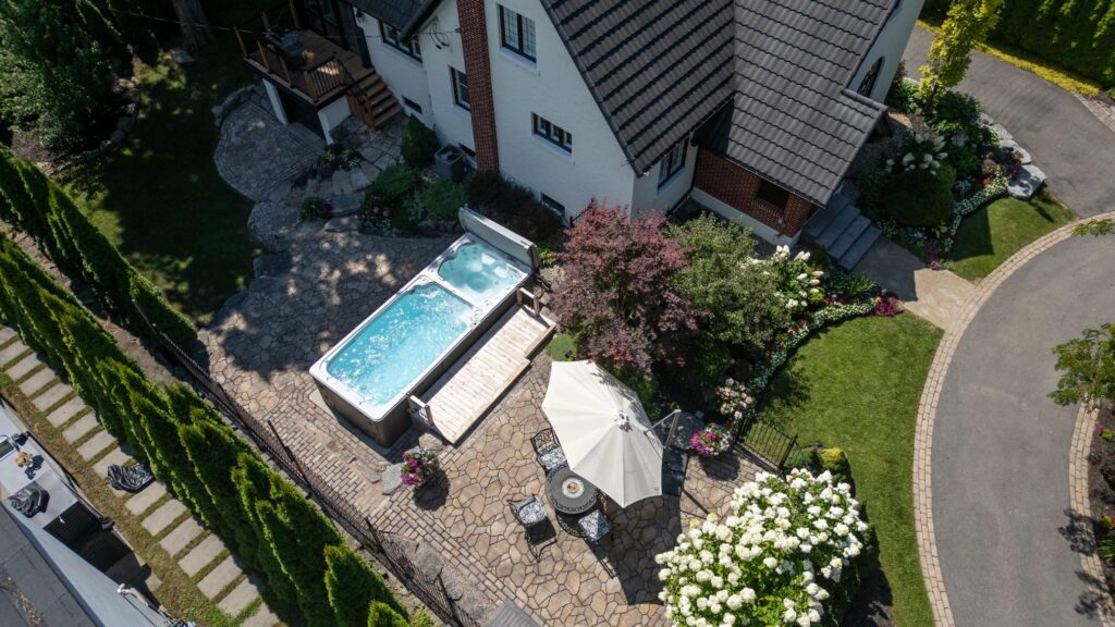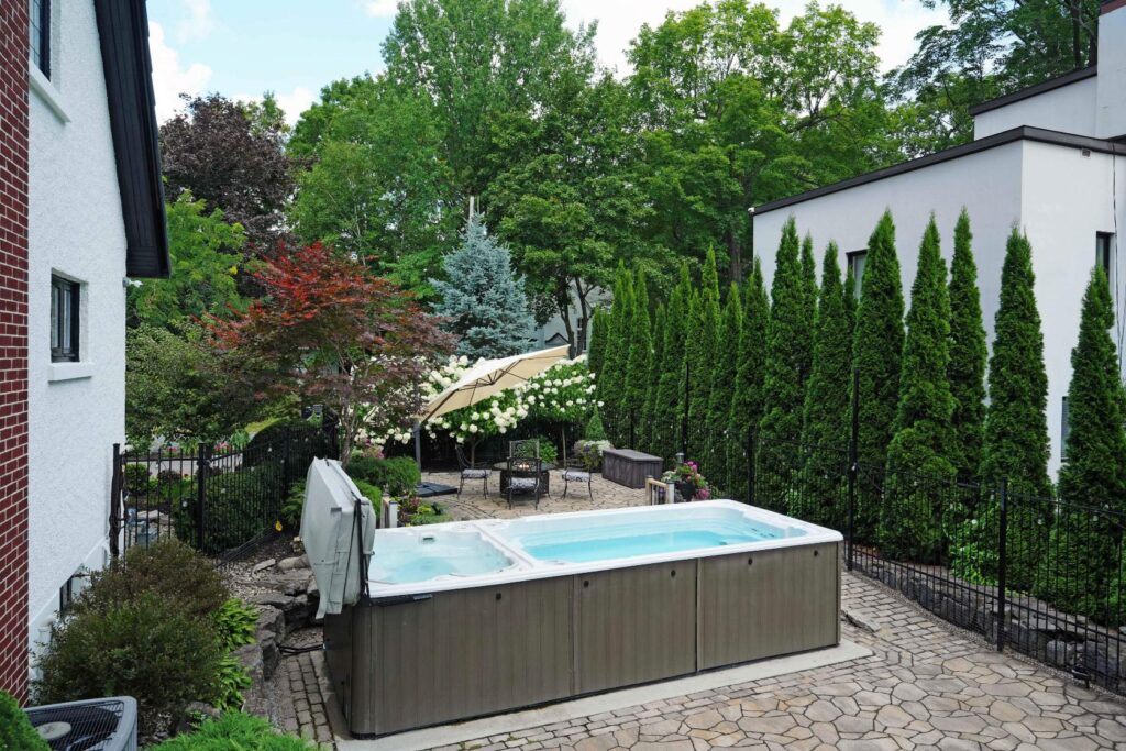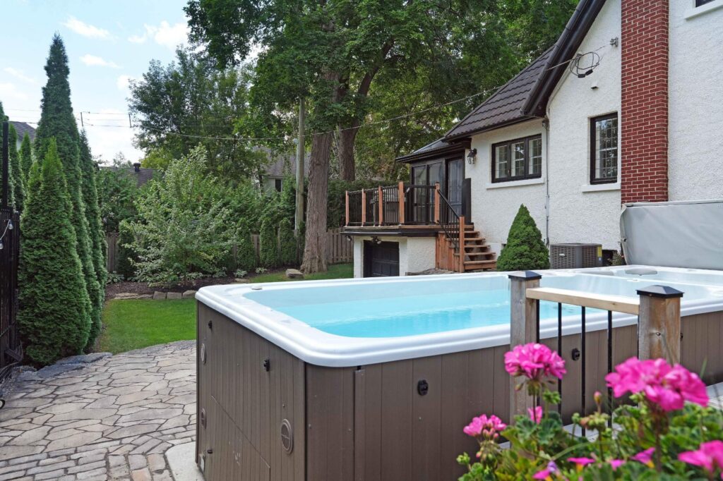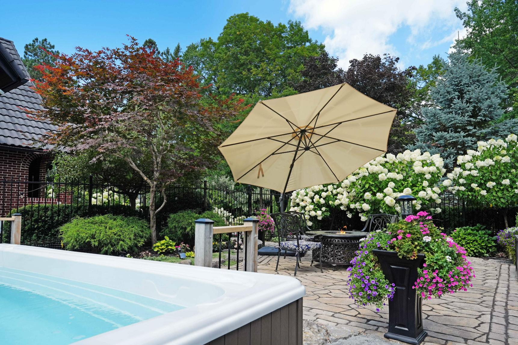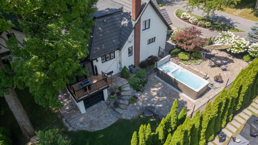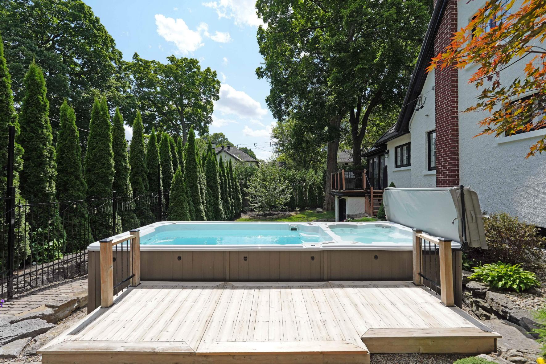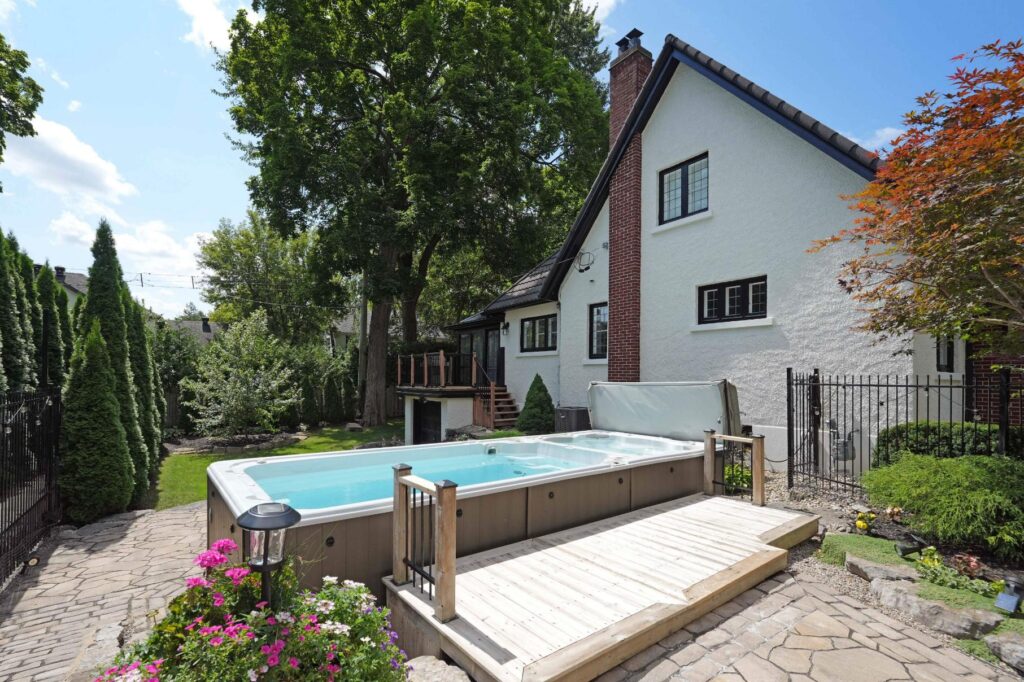 Set back amidst a lush and carefully designed landscape plan, the property offers an exceptional sense of privacy and tranquillity. The gardens unfold into a secluded retreat that can be enjoyed over three seasons, with the centrepiece being a luxurious swim spa that extends both relaxation and recreation. Whether entertaining guests or unwinding at the end of the day, this outdoor space provides the perfect setting.