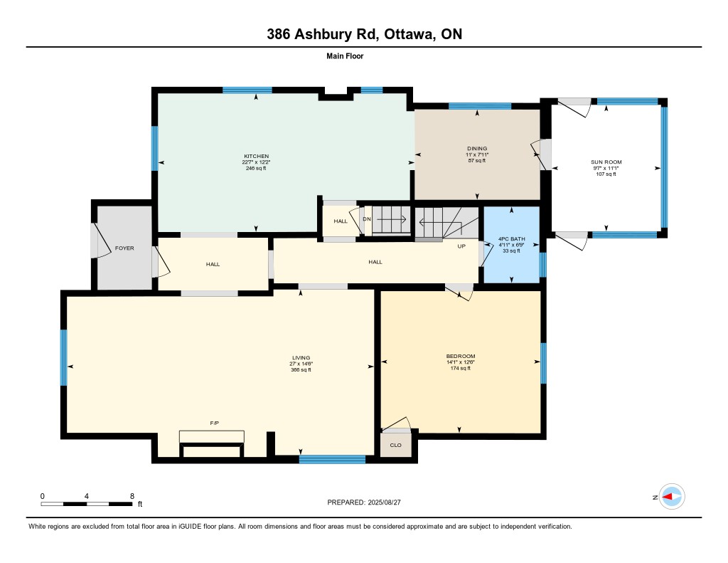 The family room makes a striking impression with its dramatic wood-burning fireplace and soaring Palladian window, which frames the surrounding landscape like a living work of art. The main level also offers a flexible guest bedroom or den, conveniently located beside a renovated four-piece bath with modern floor tiles.